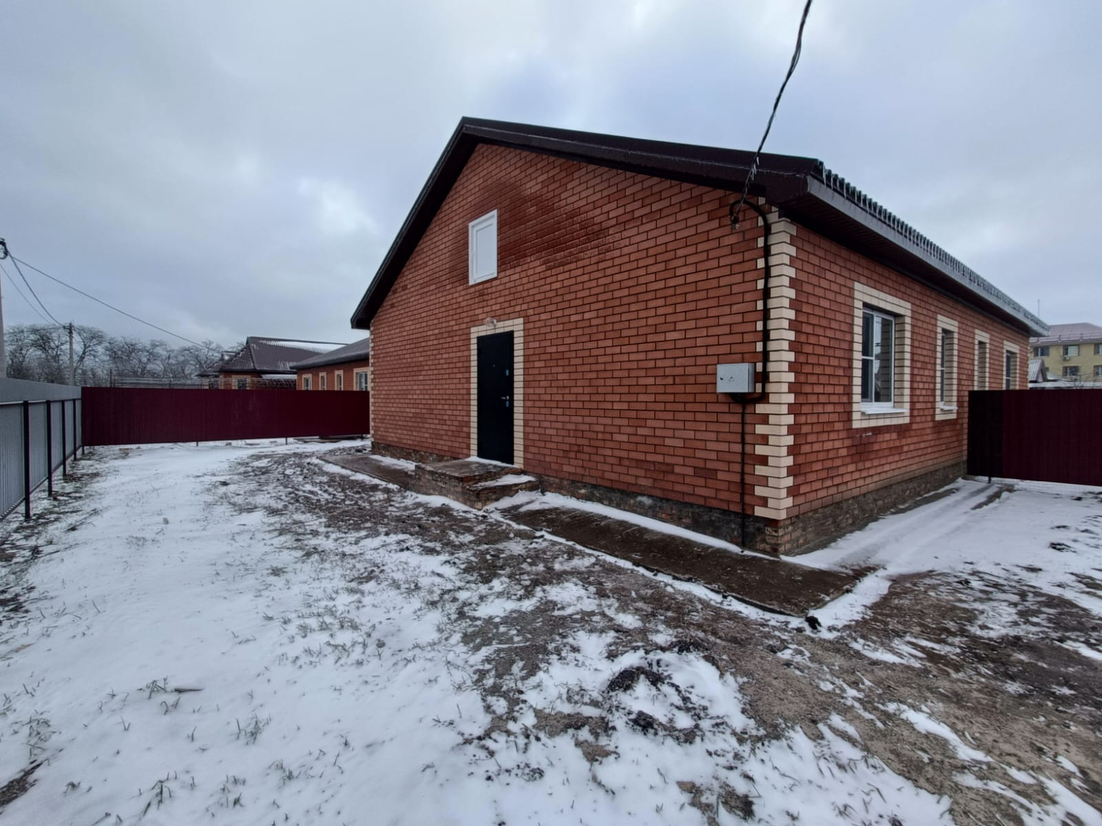 Продается новый отдельный дом в п.Краснофлотском, площадь 60 кв.м, две изолированные комнаты, кухня-столовая 17 кв.м, натяжной потолок, ламинат, ремонт. Электроотопление. Во дворе мангальная зона, въезд для авто.