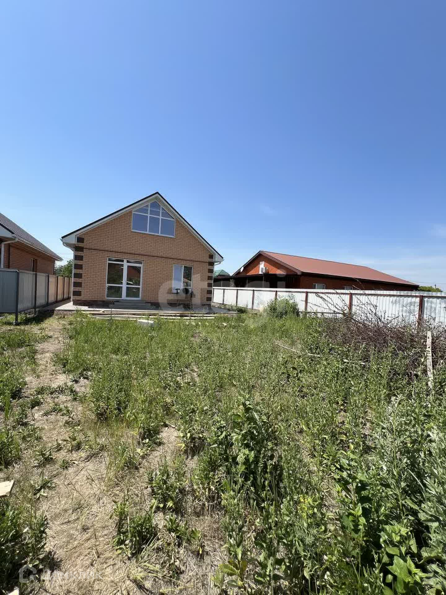 Дом сдается в предчистовой отделке, с коммуникациями: газ, центральное водоснабжение и электричество, разведены по дому и подключены, канализация септик. Стены оштукатурены, потолки утеплены и подшиты доской. В прихожей, санузле и кухне-гостиной, система «теплый пол», в спальнях радиаторы. Двор огорожен по периметру забором из металлопрофиля, двор выложен плиткой.