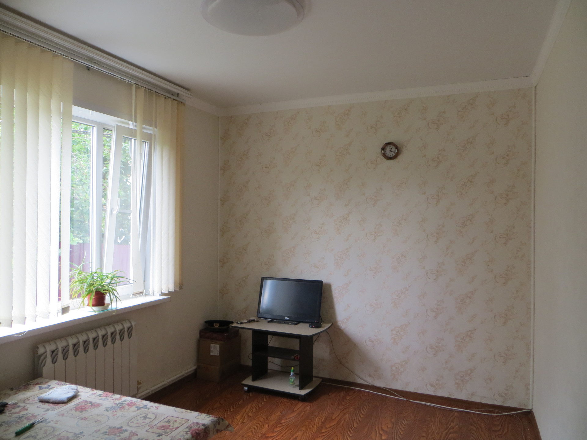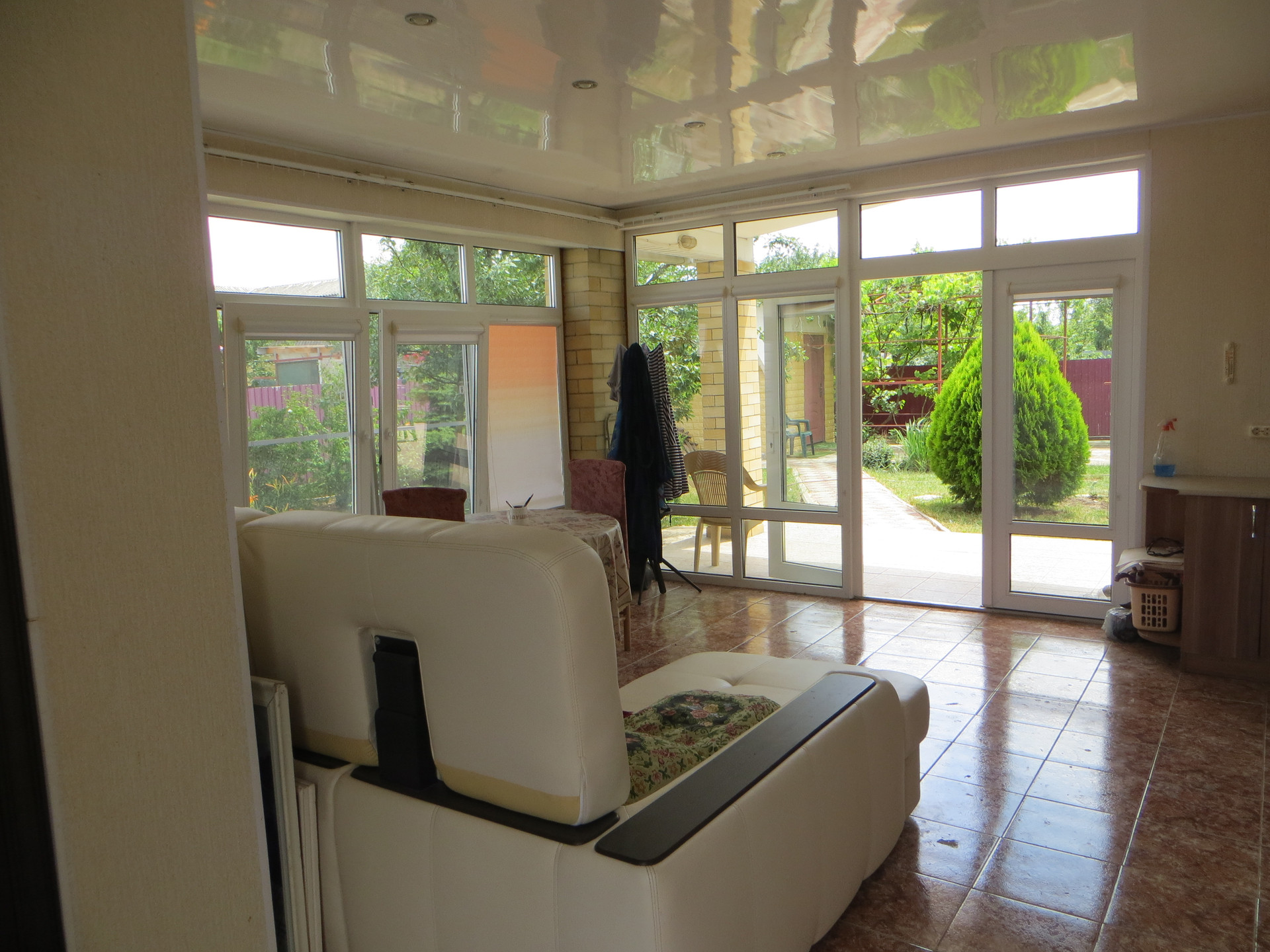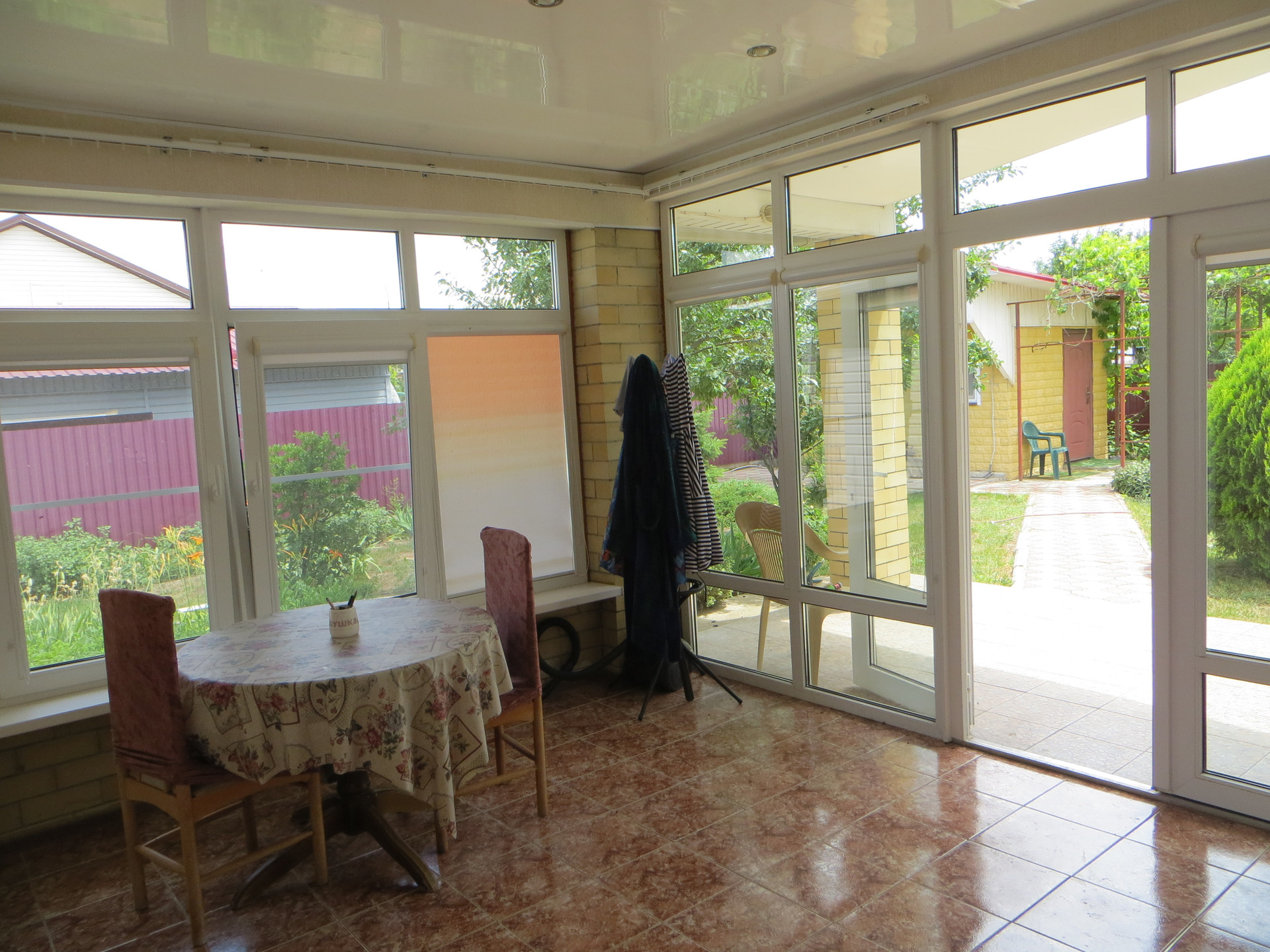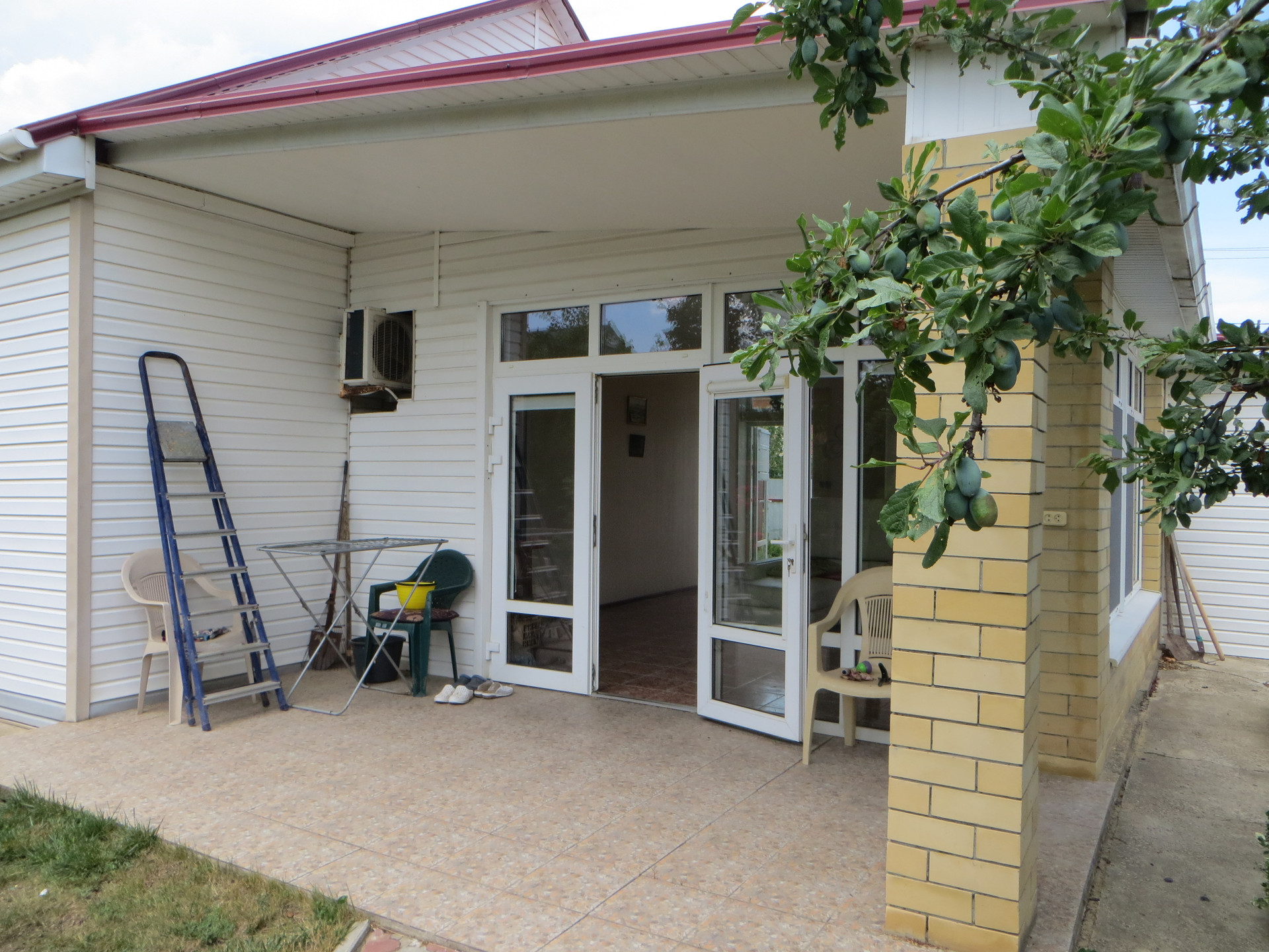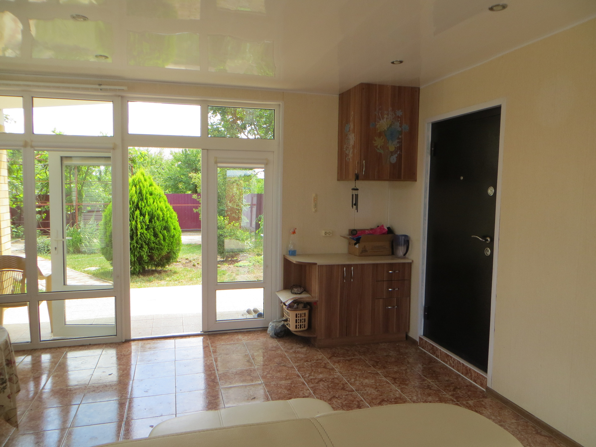 ___ Большой двор – плитка, участок 5 соток. Другие постройки: отличная баня на дровах; два гаража. Во дворе есть водная скважина. Хороший виноград, плодовые деревья.