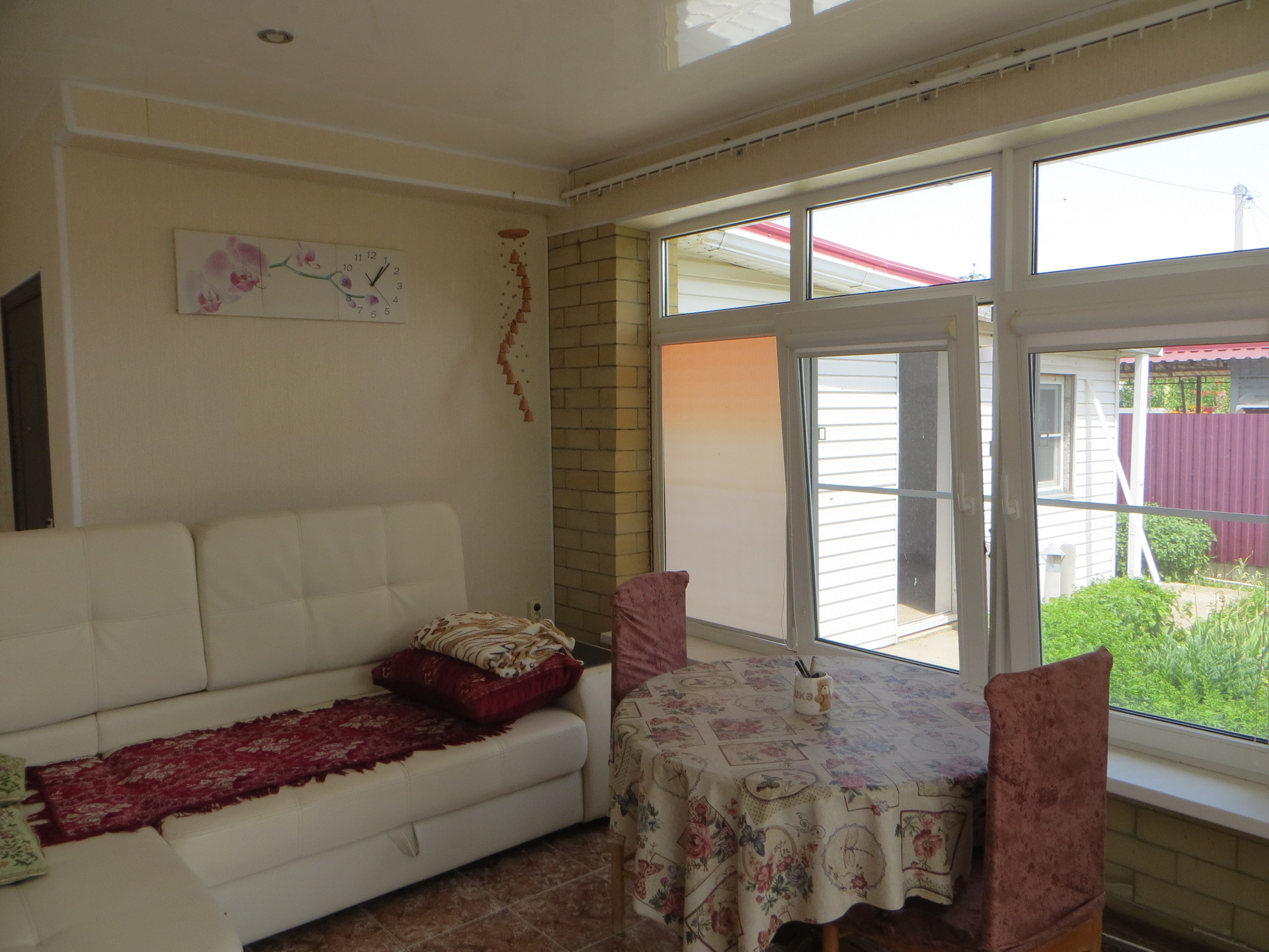 ___ Таунхаус, Ейский район, пос. Краснофлотский, район ул. Казачья. Видный, дом со входом в большую летнюю гостиную и с выходом в сад. Город рядом. Площадь дома: общая 76,9; жилая 29,2; кухня 10,2 кв. м. Две изолированные комнаты.