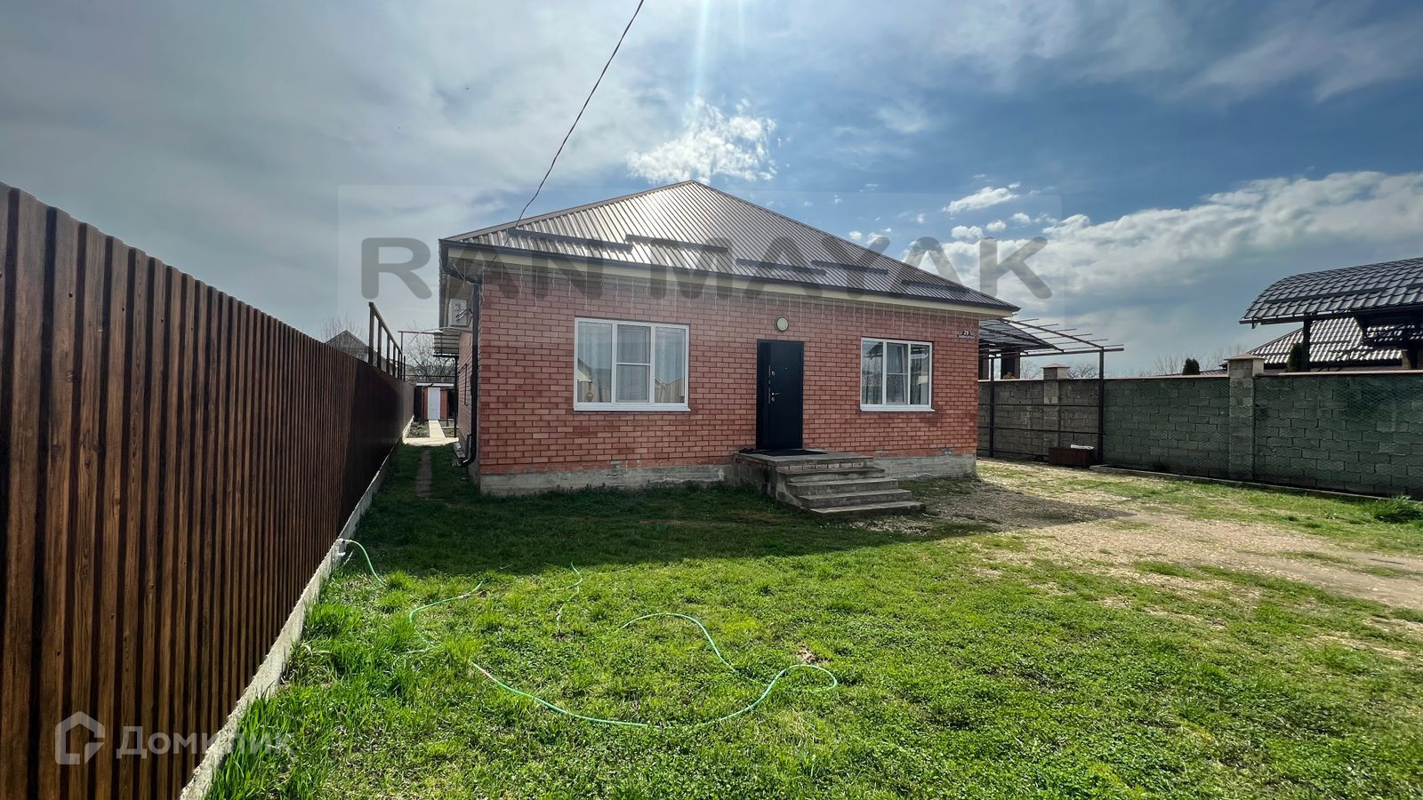 Участок чистый, ухоженный, за домом навес с зоной отдыха.