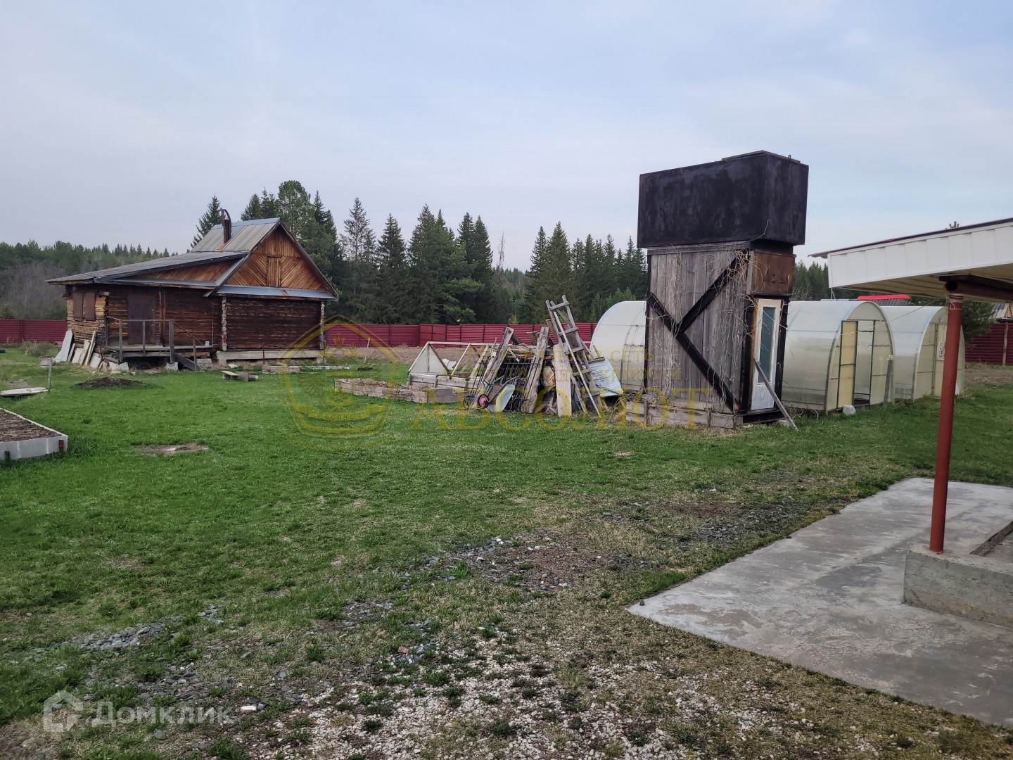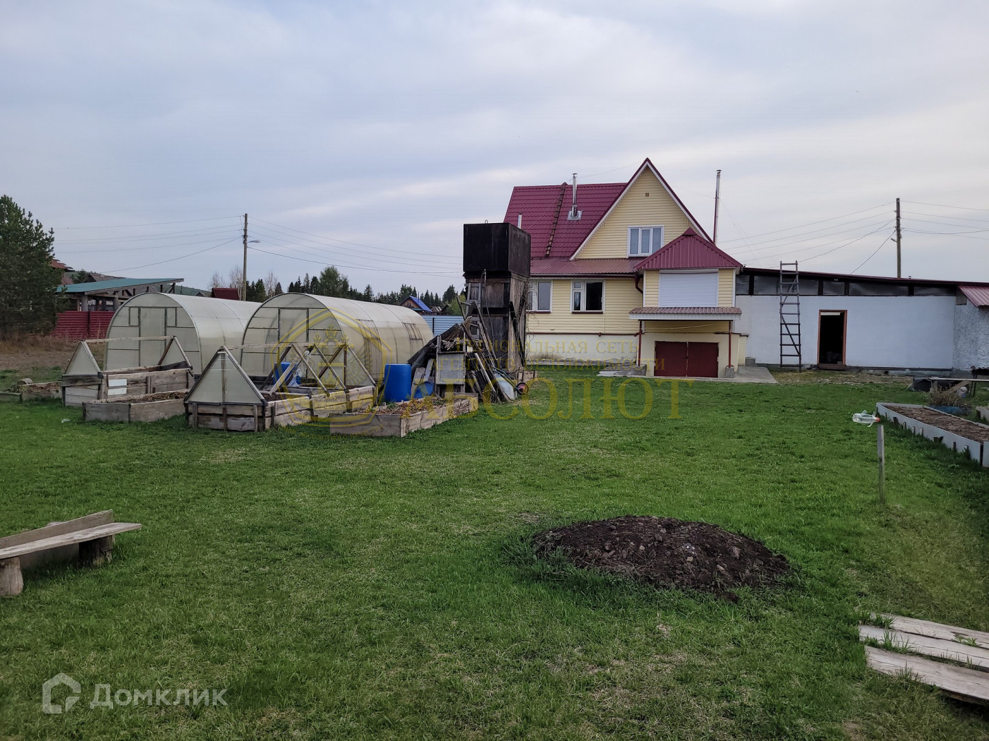 Загородный комплекс состоит из жилого дома, крытого двора, гаража, отдельно стоящий сруб для бани, 2 теплицы из поликарбоната, 2 парника, много разных насаждений на большой прилегающей территории.