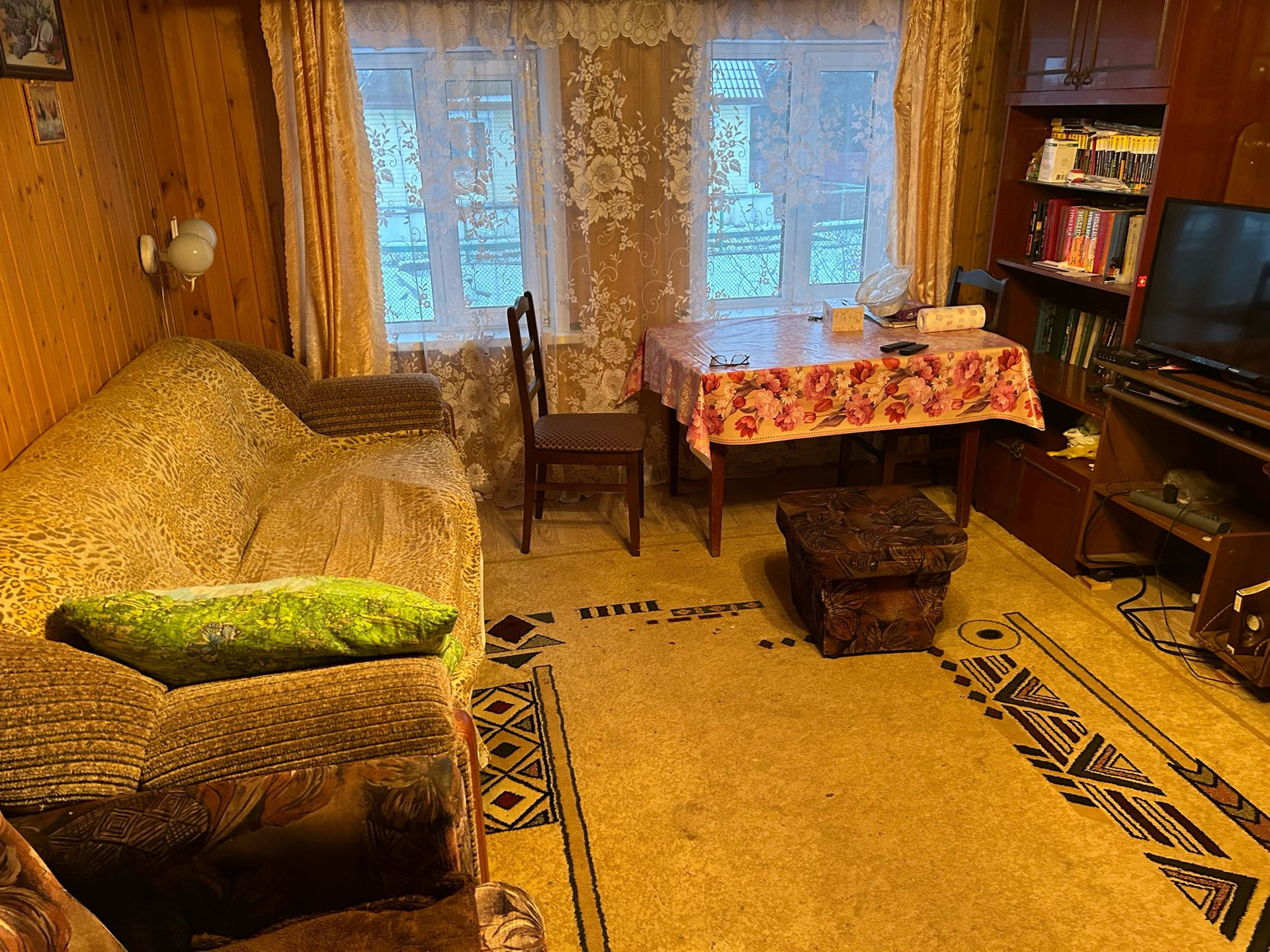 Дом из бруса плюс мансарда, большие комнаты, возможна перепланировка, окна пластик, стены утеплены снаружи и снутри, пол утеплен, снаружи сайдинг, печь кирпичная, потолочный обогреватель, большая веранда к дому, баня 24 кв.м три отделения(парилка, мойка, для отдыха),большой крытый двор между домом и баней, сарай, две теплицы по 6 м, яблони с маленькими и большими яблоками, кусты ягод, река 200 м. Скважина 25 м, кессон 1 куб м , туалет в крытом дворе и на улице.