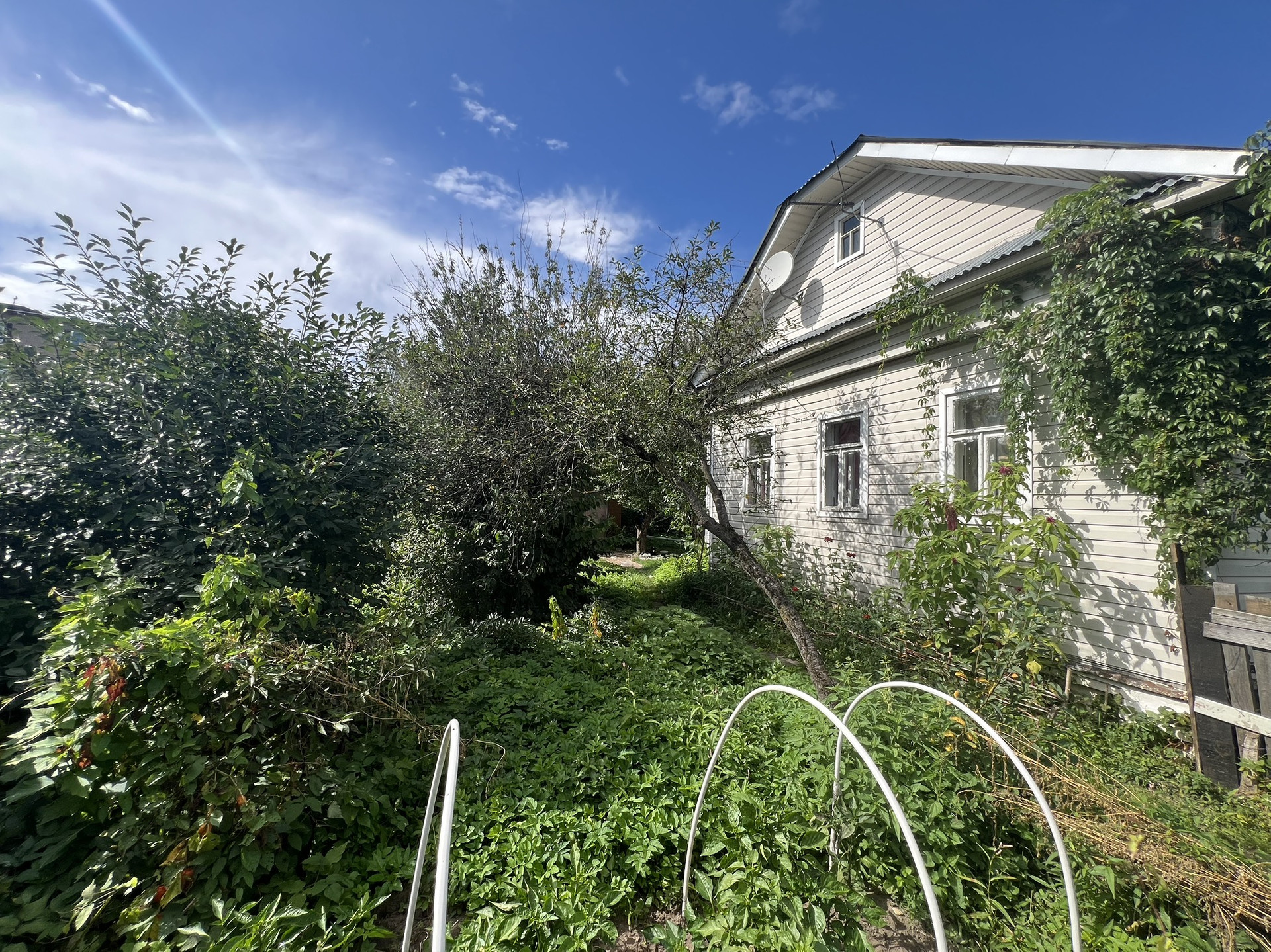 Деревянный дом , можно заехать и жить , все коммуникации в доме , газ,  свет , вода и канализация .