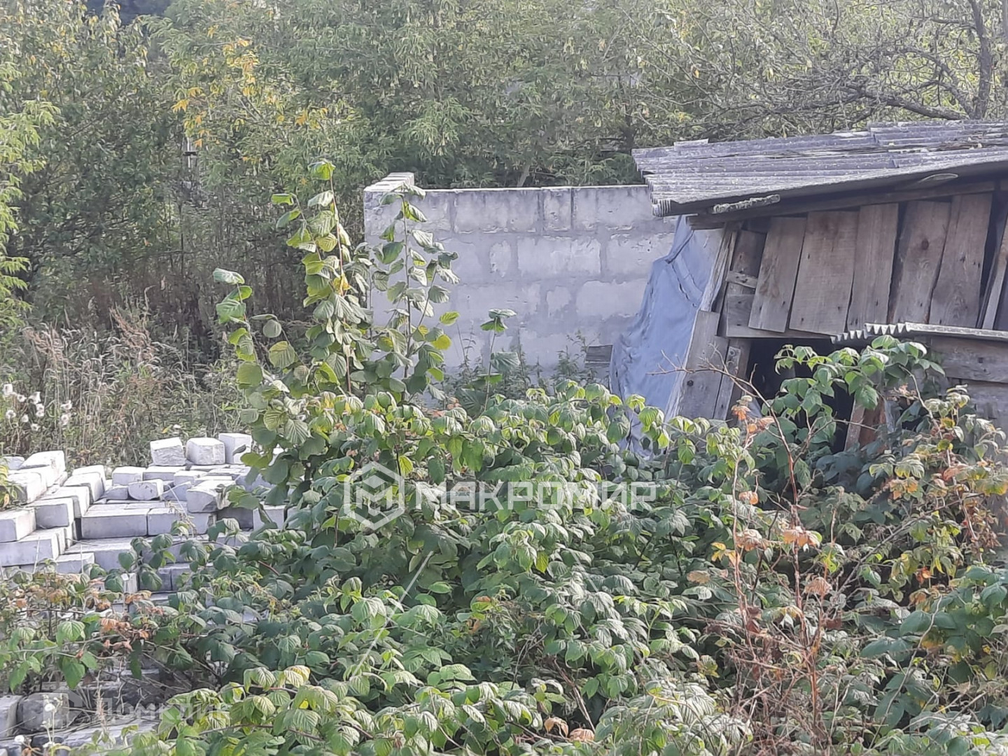 Участок огорожен по периметру забором, есть ворота и калитка из профлиста. На территории двора есть колодец, большой хороший сарай из пеноблоков 20кв.м , огород с очень плодородной почвой, имеются насаждения, заложено основание для летней кухни.