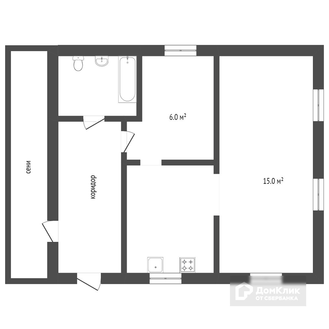 Общая площадь 30.6 м2
