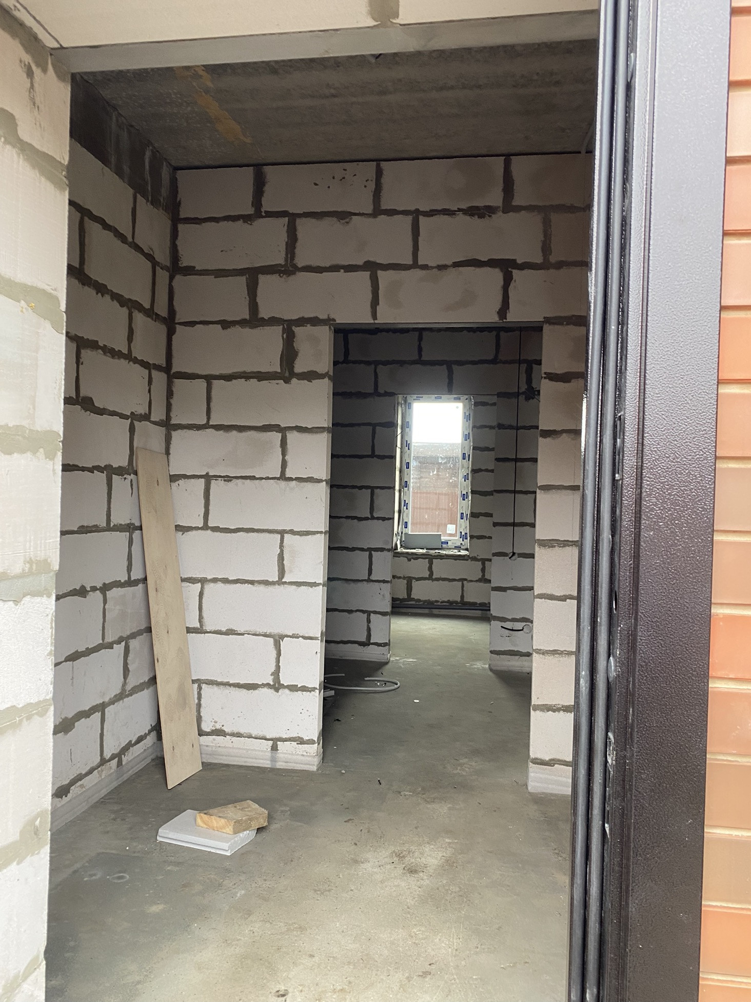 Кухня- гостиная 38м, тамбур 5,5м, санузел гостевой 5,6м, котельная- 5,6м, коридор - 15,5м; стены оштукатурены и отшпаклеваны