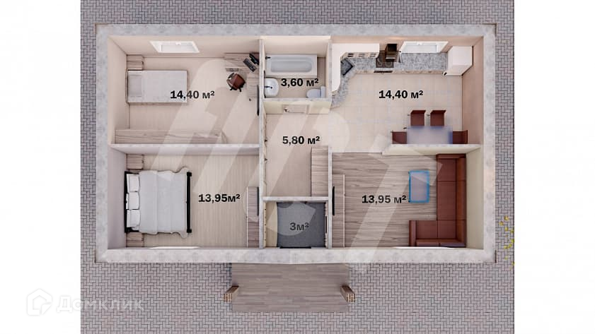 • Две изолированные комнаты, площадь которых составляет 13.95 кв.м., 14.4 кв.м.