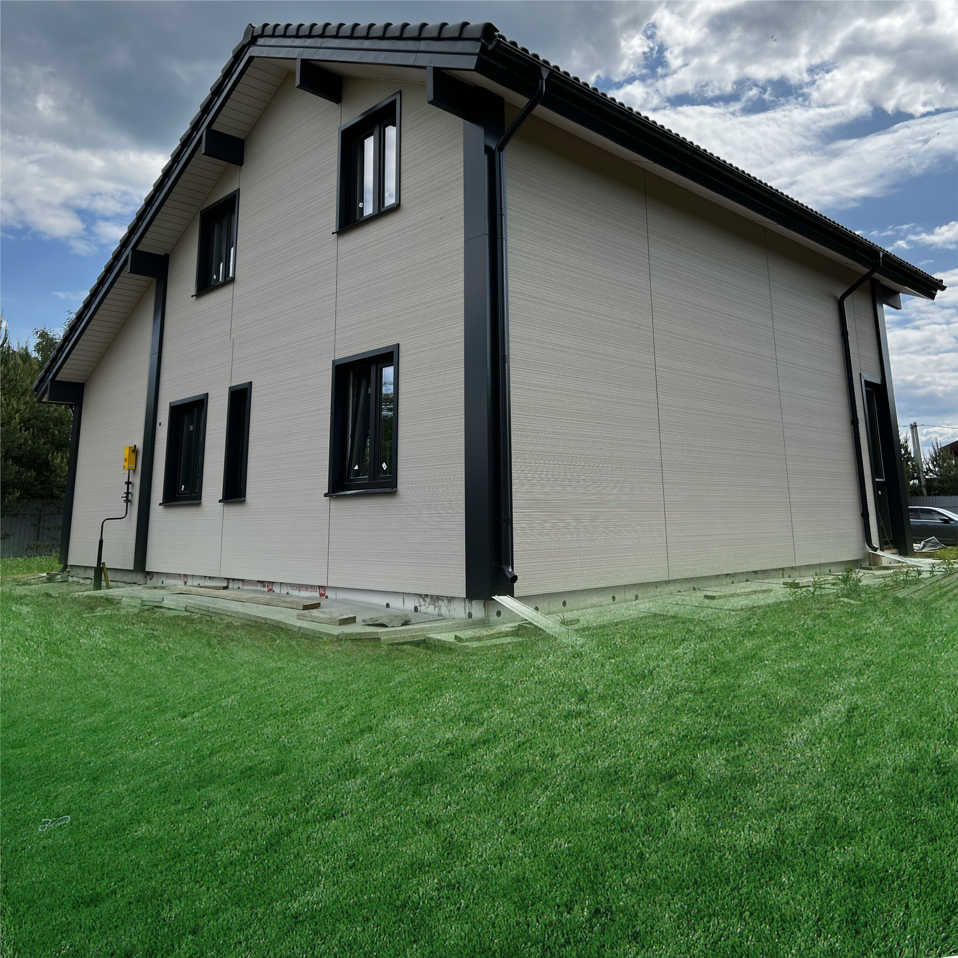 - Фундамент - монолитная железобетонная утеплённая плита с закладкой гильз под коммуникации или оцинкованные винтовые сваи (зависит от геологических изысканий) - это самые лучшие по показателям прочности фундаменты, дом на таком фундаменте простоит 120 лет и более, при этом в процессе эксплуатации данные типы фундаментов не требуют обслуживания.