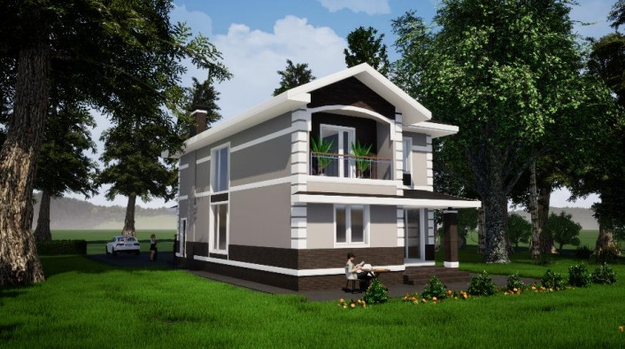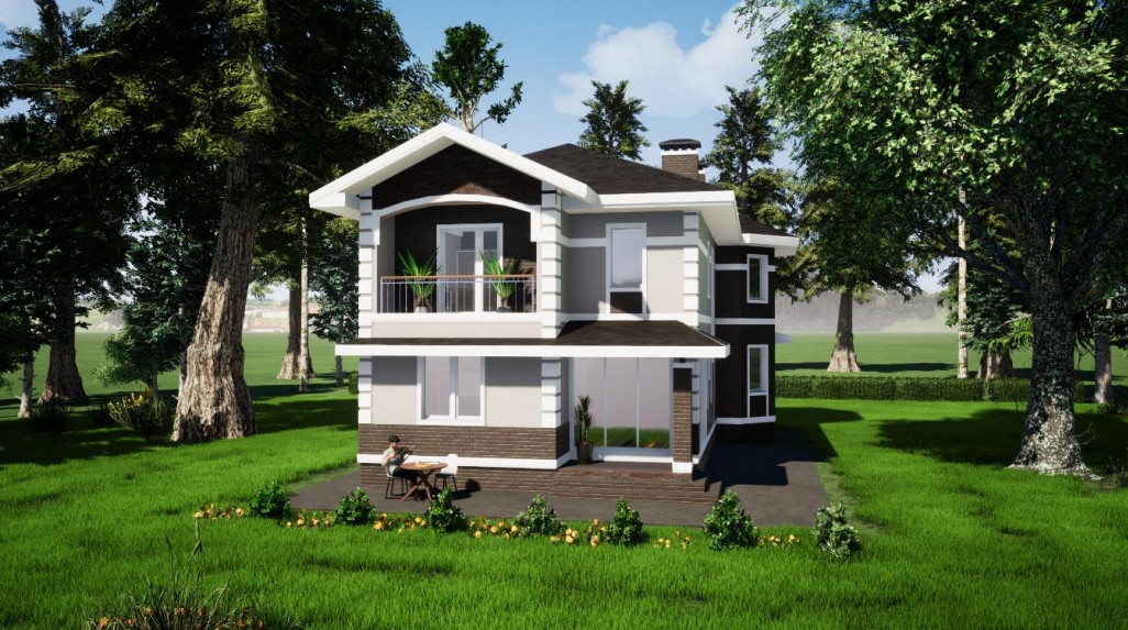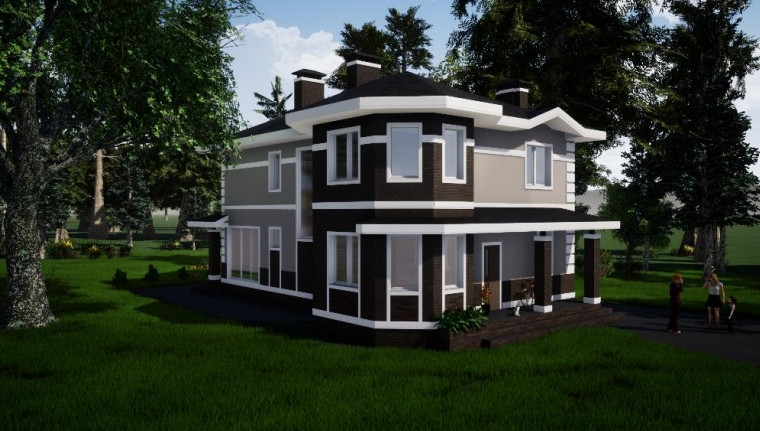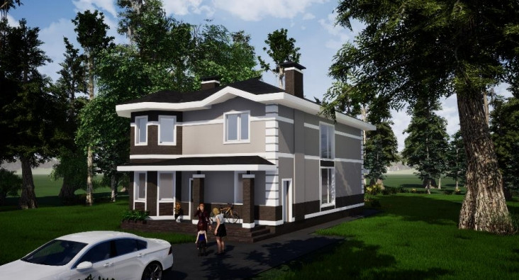 Наружная отделка: керамический облицовочный кирпич и штукатурка.