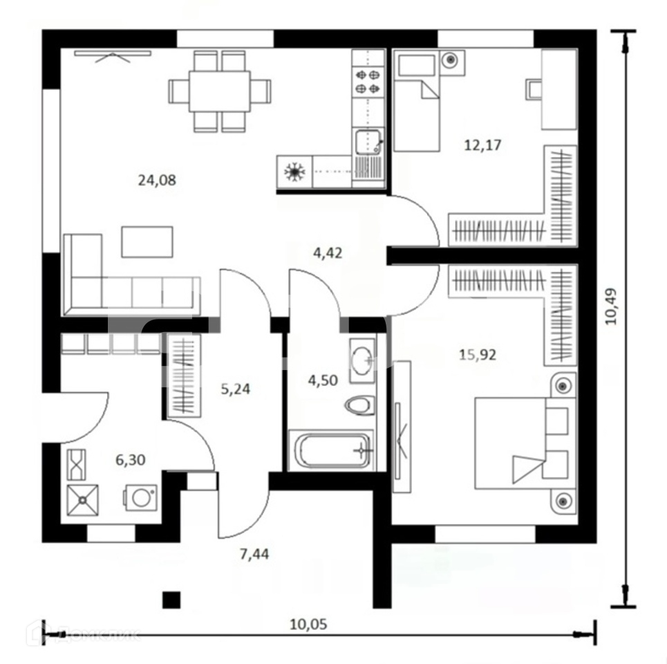 Общая площадь 80.7 м2