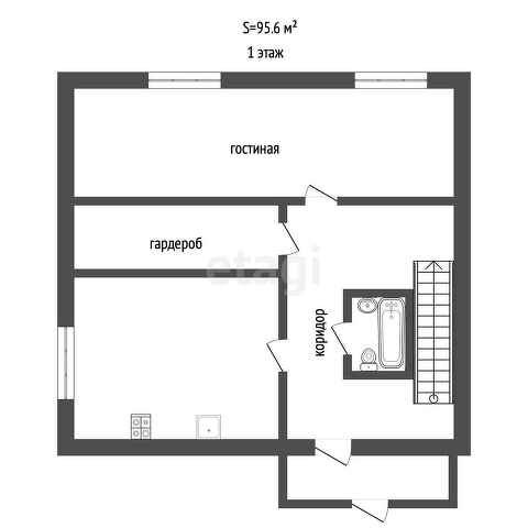 Индивидуальное газовое отопление (установлен электрический газовый котел) и все коммуникации: вода, канализация, электричество (сниженные тарифы за коммунальные услуги, т.к. используются районные коэффициенты). Нет коммунальных платежей управляющей компании, дом находится на самоуправлении, т.е. Вы платите только за те ресурсы, которыми пользуетесь. 1 этаж: гостиная – 20,6 м2, кухня - 11,8 м2; гардеробная 4,8 м2; санузел – 1,9 м2.