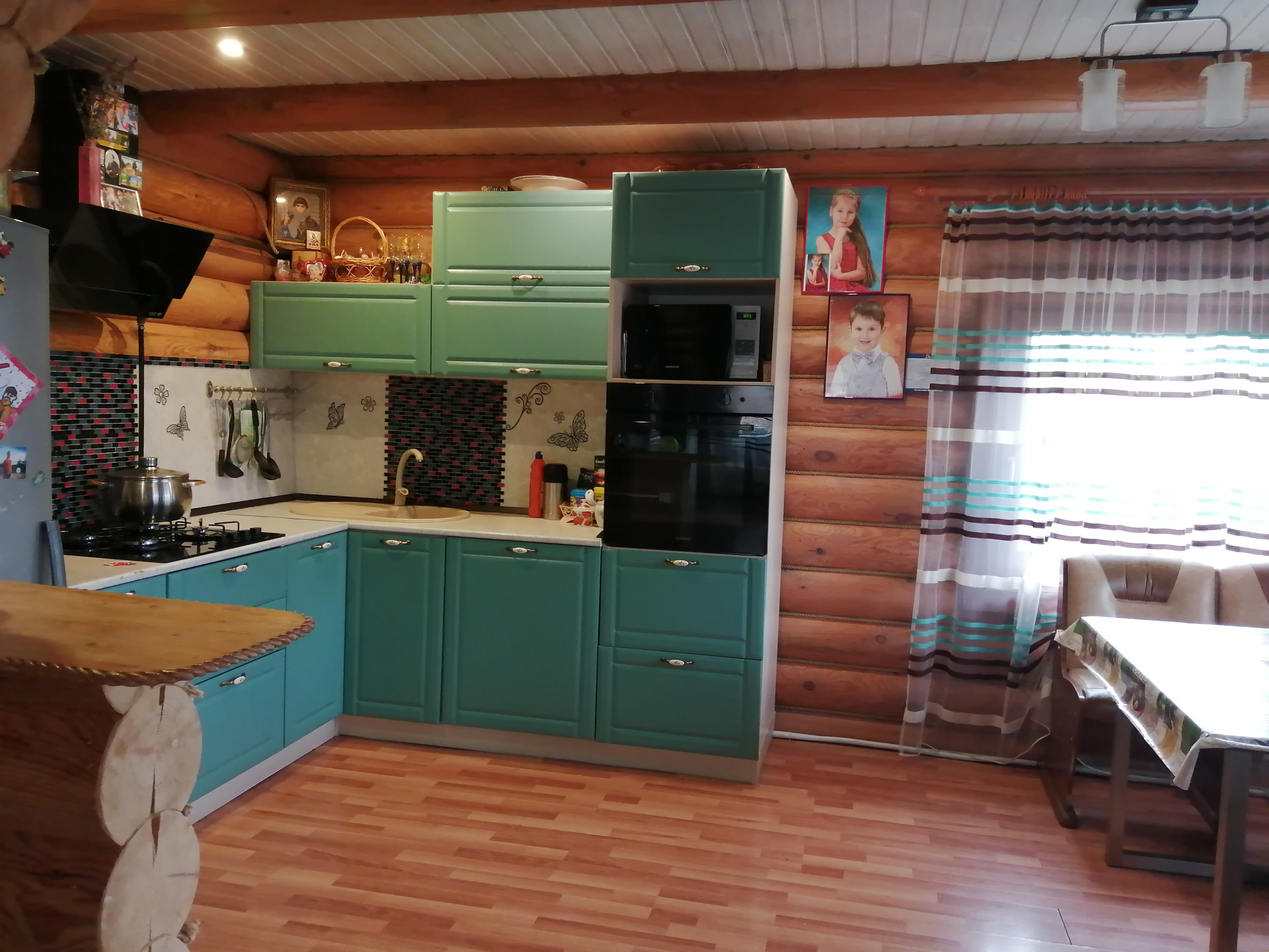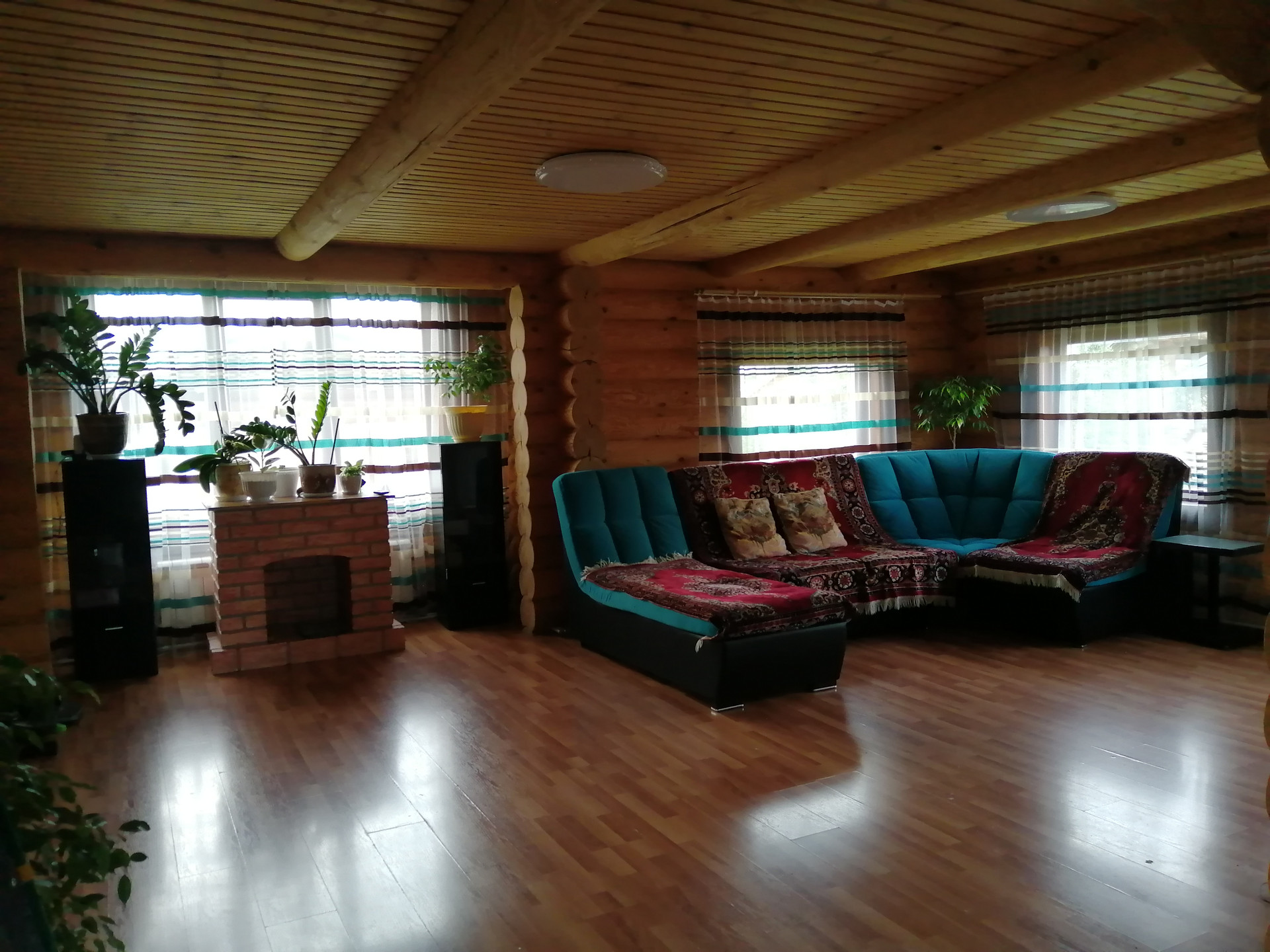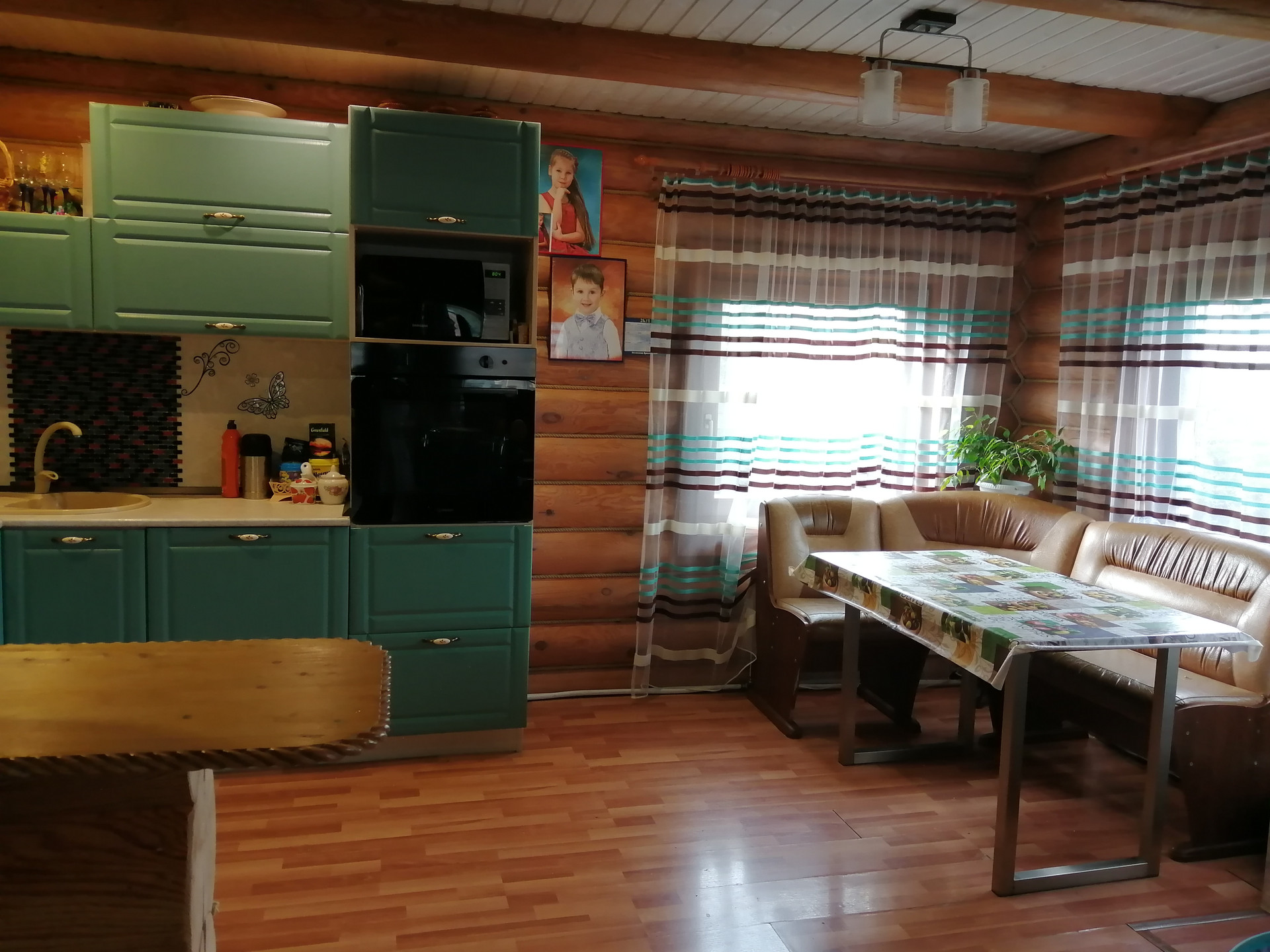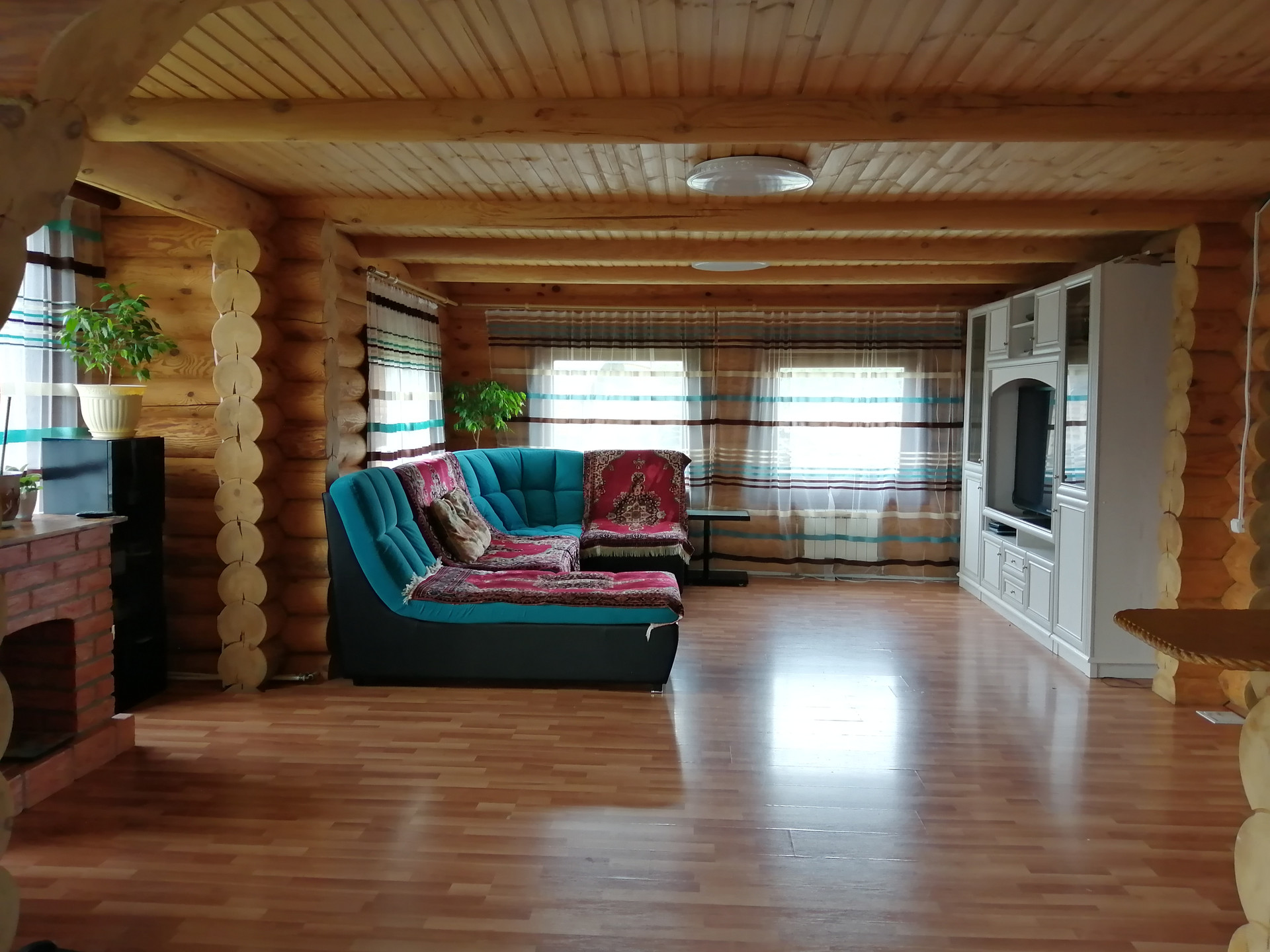 Хороший, теплый дом из цилиндрованного бруса. Участок разработан, есть детская площадка, беседка