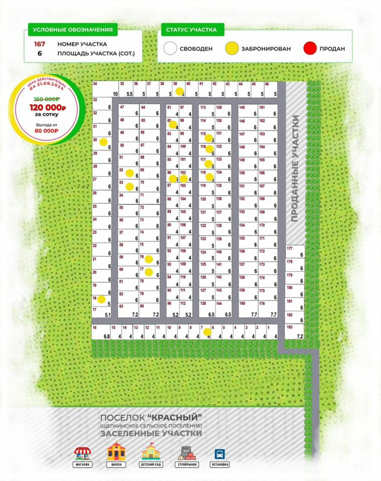 Всего в наличии 163 участка. Старт продаж участков в п. Красный (Щепкинское сельское поселение).