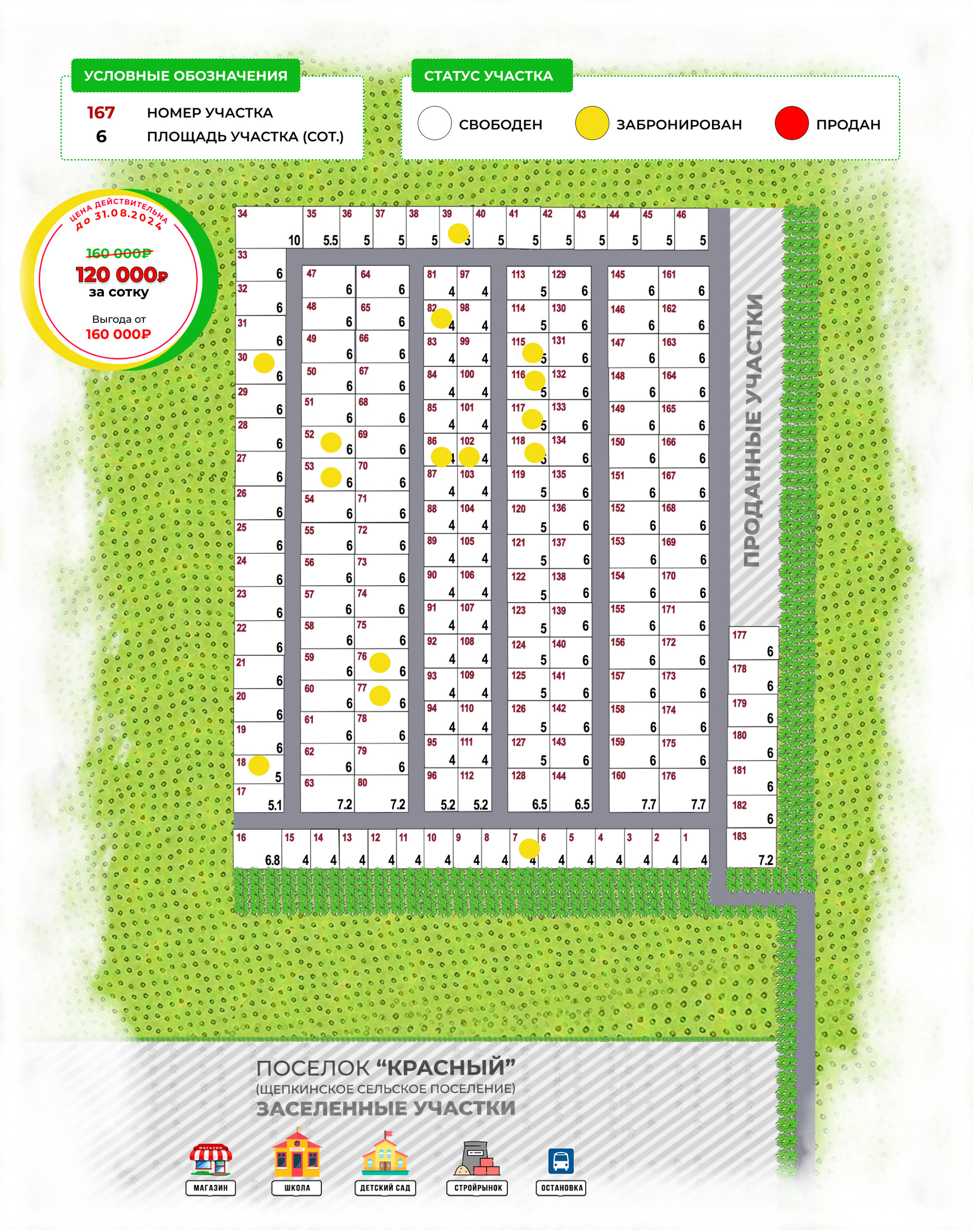 Здесь цена будет через 4-6 месяцев ~160-180 тр за сотку. Отличная инвестиция.