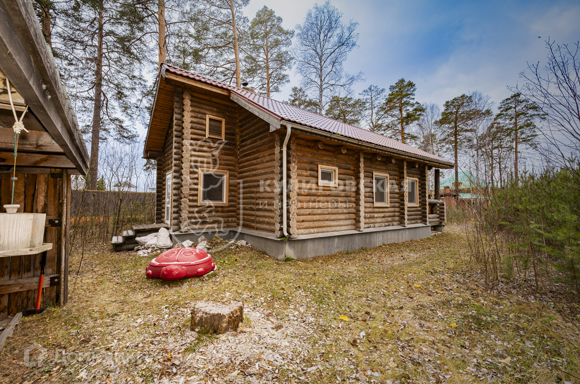 На участке добротная бревенчатая баня.