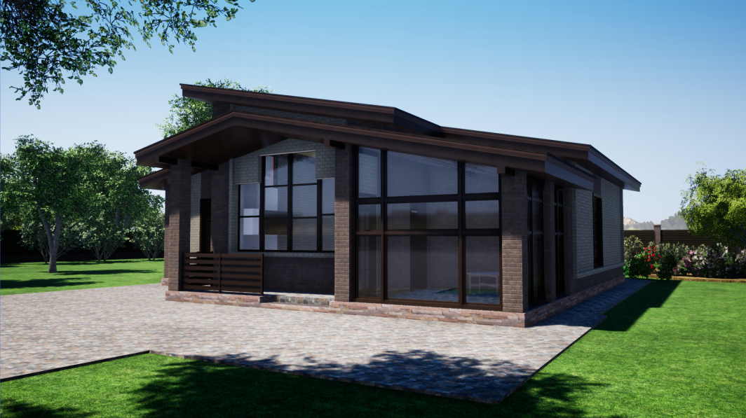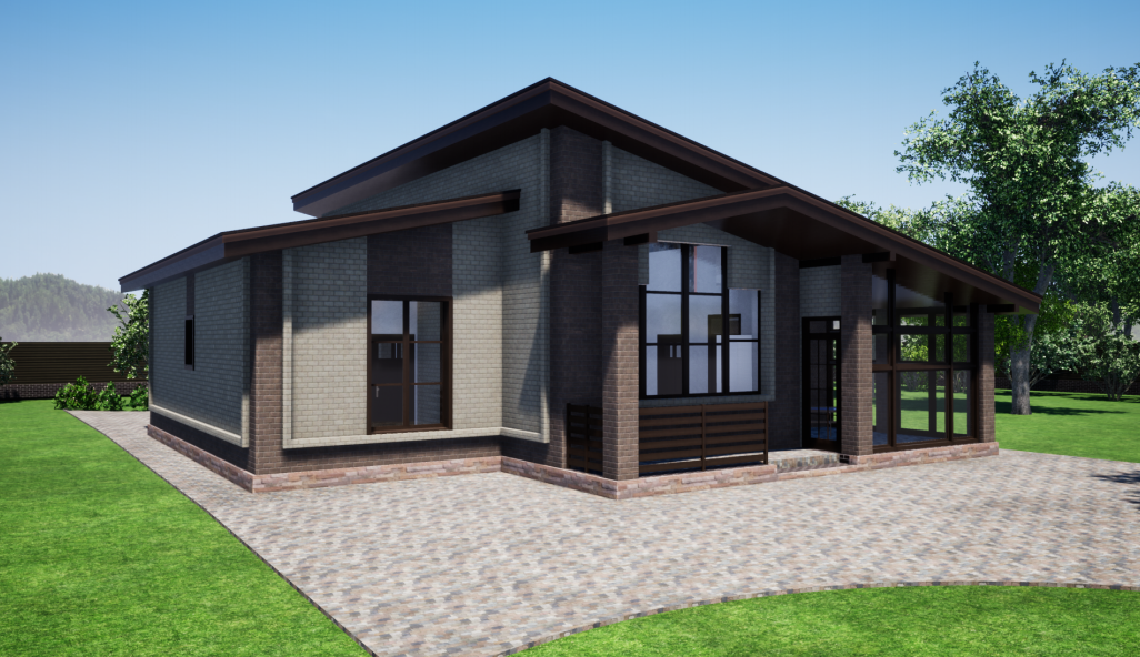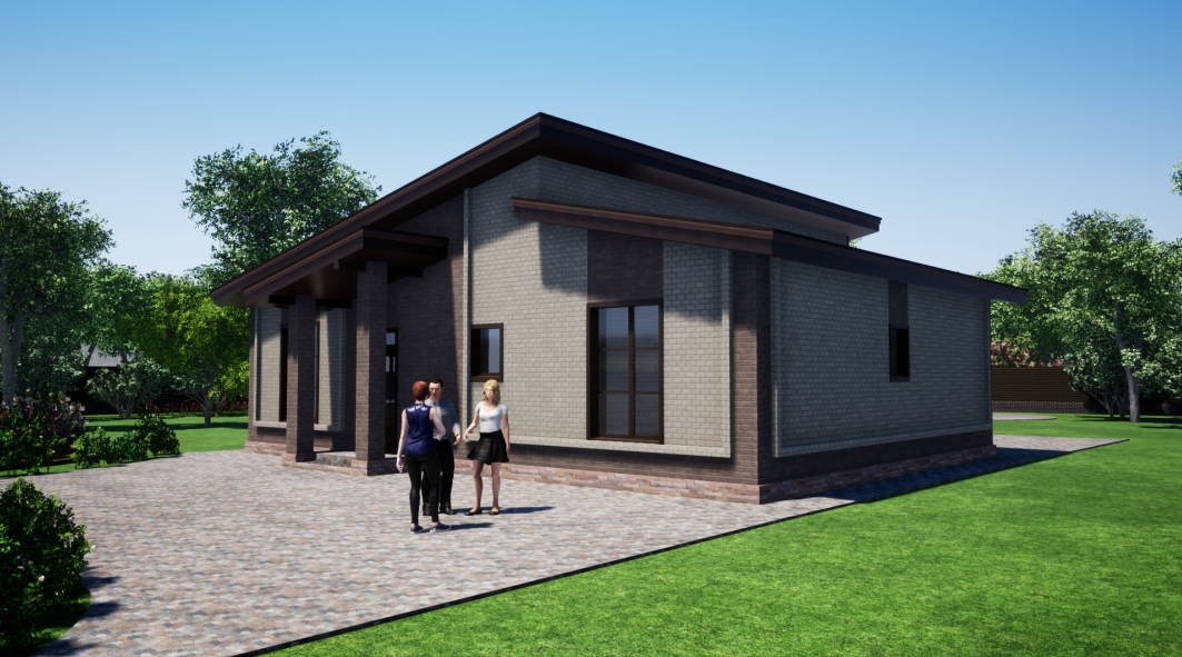 Материал стен: газобетонный блок, облицовка - кирпич надежного производителя "Kerma", цвет-коричневый и пшеничное лето, что придает коттеджу красивый престижный внешний вид.