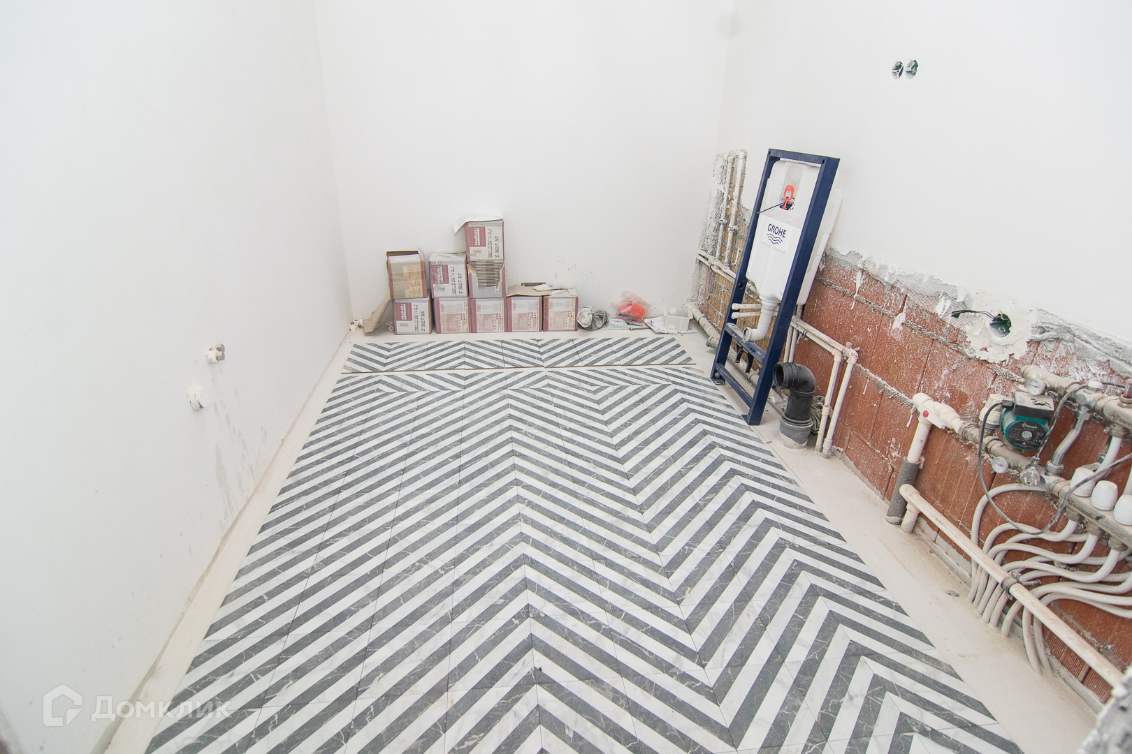 • На полу крупноформатный керамогранит.