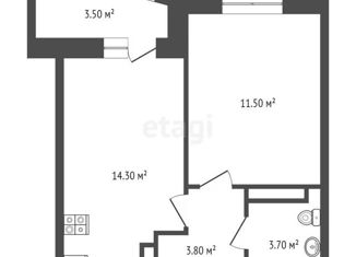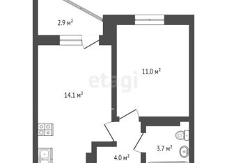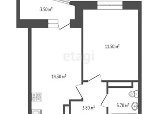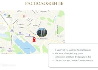 1-комнатная квартира на продажу, 38.7 м2, Мирная улица, 4
