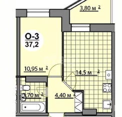 Общая площадь: 37 м2