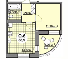 Общая площадь: 38.7 м2