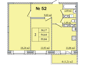 Общая площадь: 55.84 м2