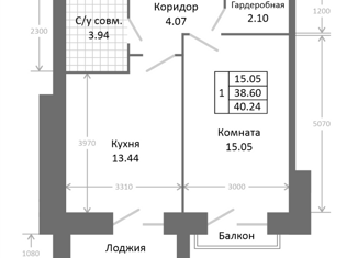Жилая: 40.3 м2