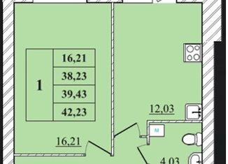 1-ком. квартира на продажу, 42.05 м2