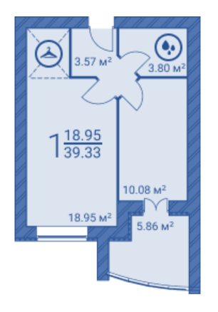 Жилая площадь 18.95 м2
