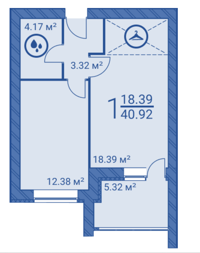 Общая площадь 41.58 м2
