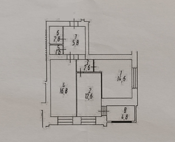 - балкон 4,8 кв.м. с выходом из маленькой спальни (застеклен ПВХ).