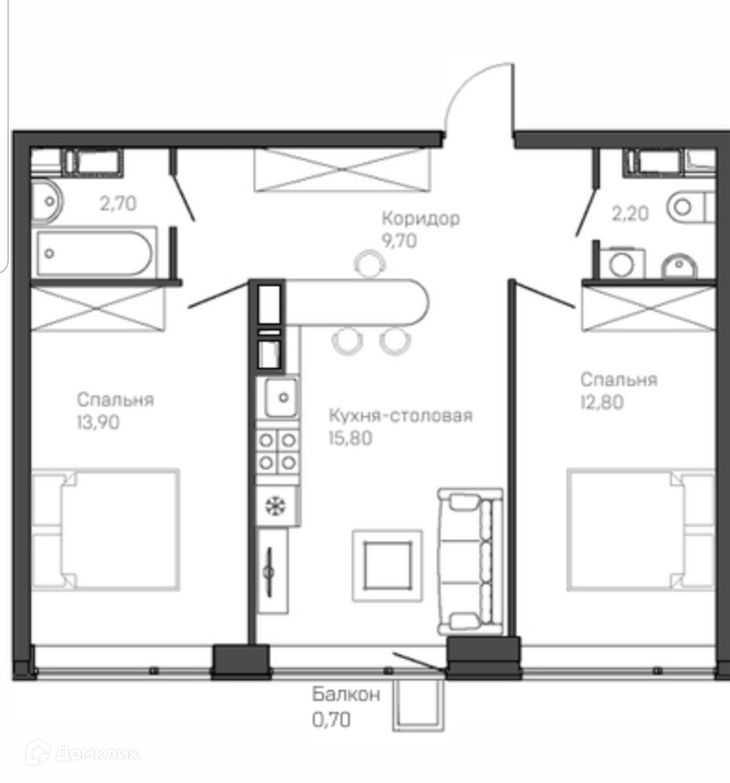 Жилая площадь 26.7 м2