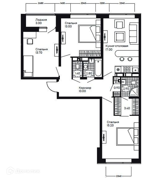 Площадь кухни 17 м2