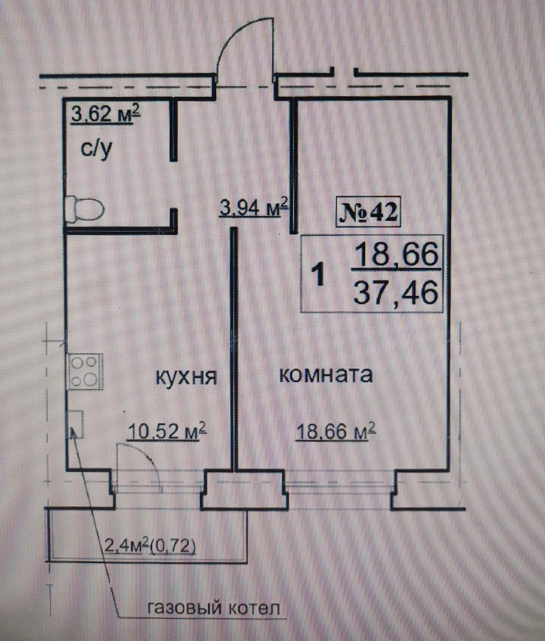 Общая площадь 38 м2
