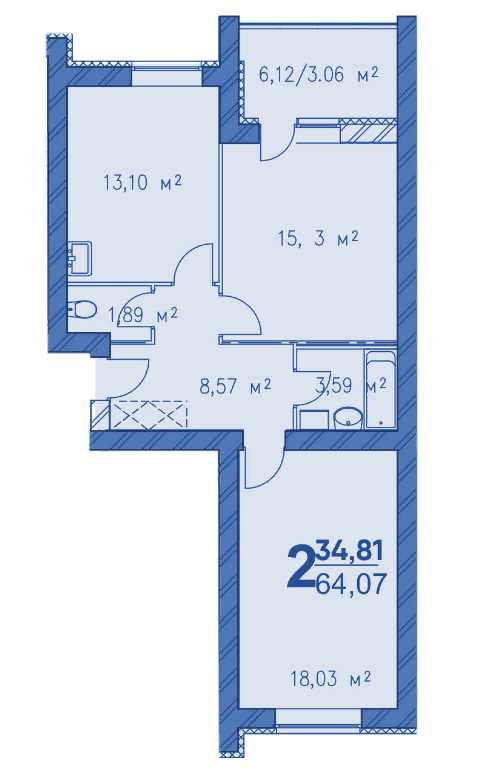 Общая площадь 64.64 м2