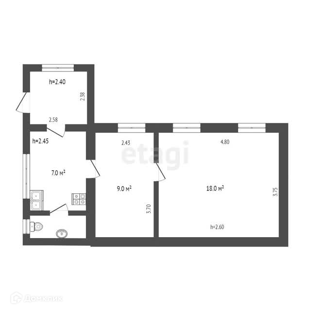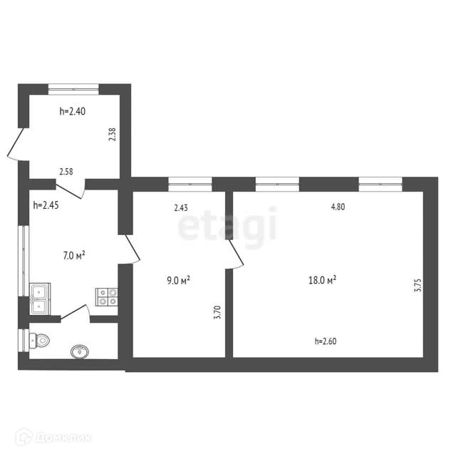 Общая площадь 36.4 м2