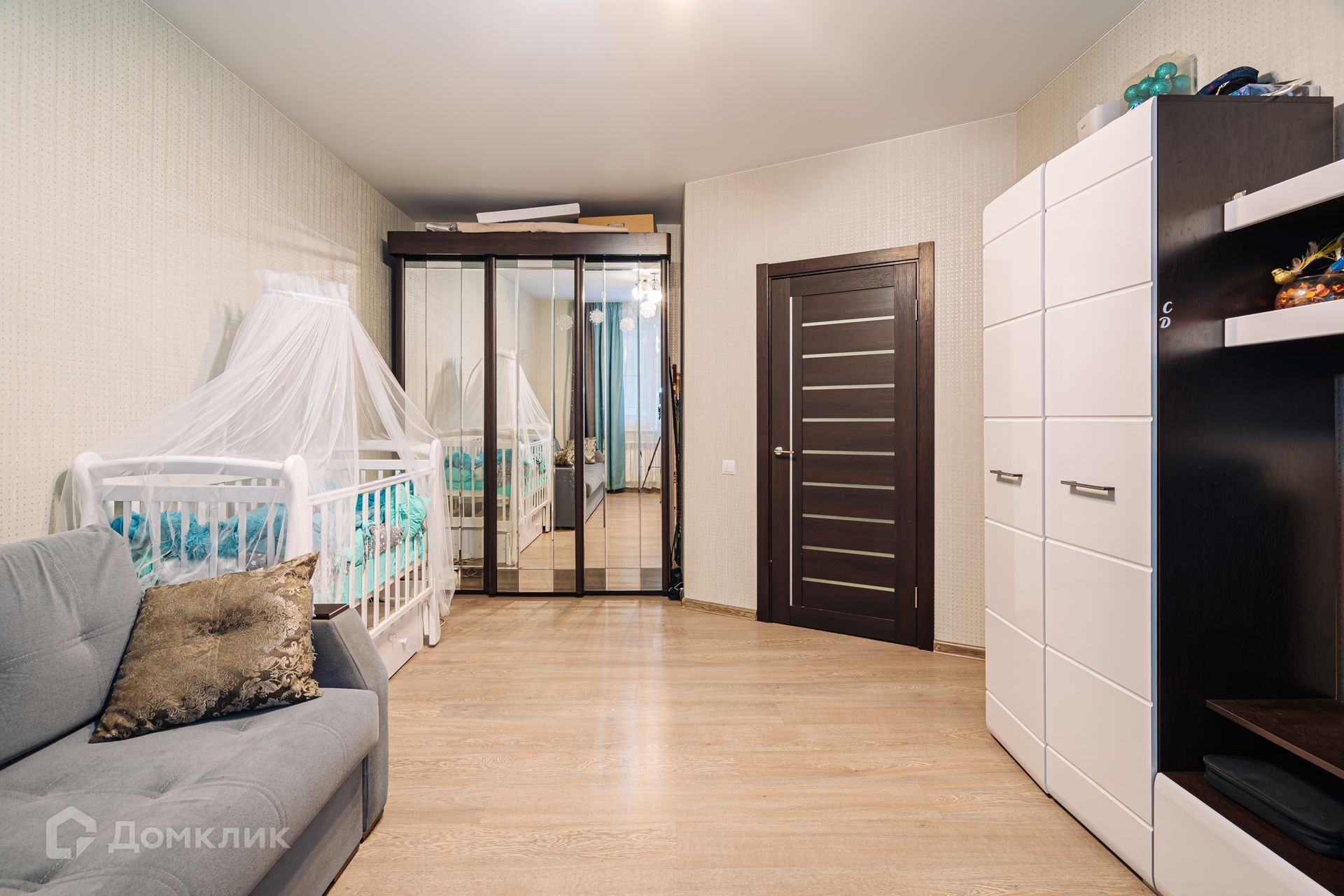 Пол в комнате ламинат, входная группа и кухня керамическая плитка.