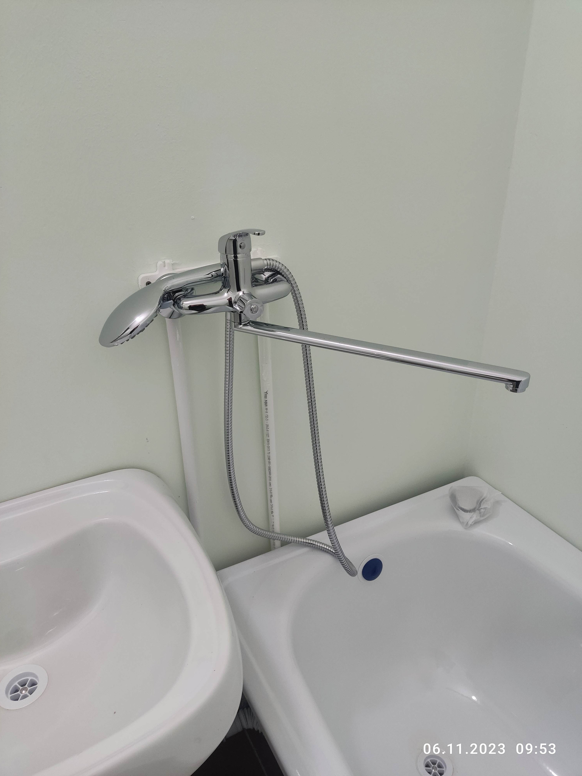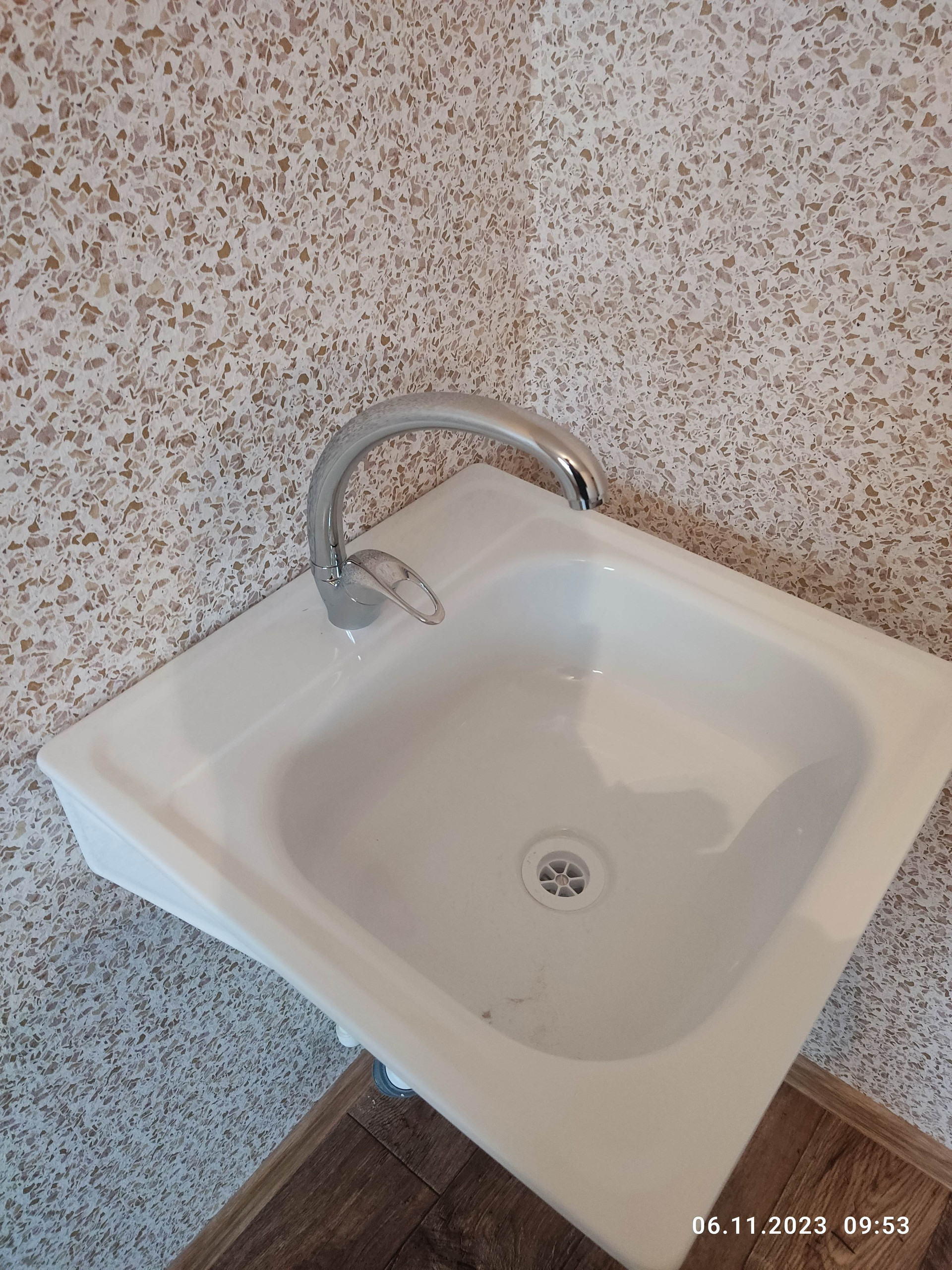- На кухне мойка со смесителем. Розетка под эл/плиту.