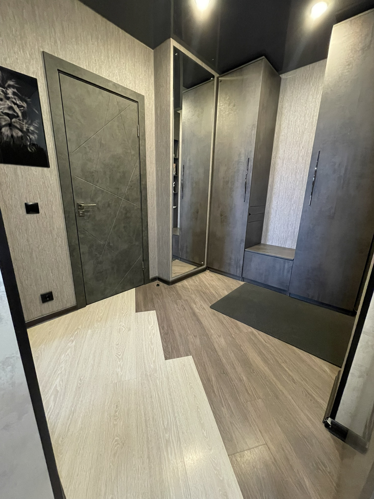 В коридоре установлен вместительный шкаф по индивидуальным размерам и чертежам.