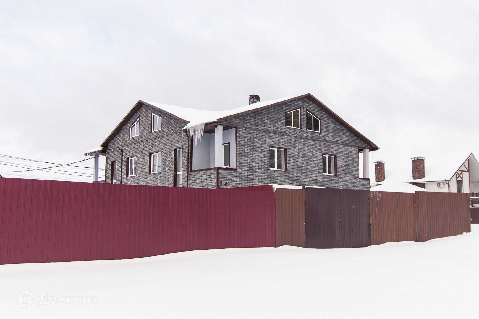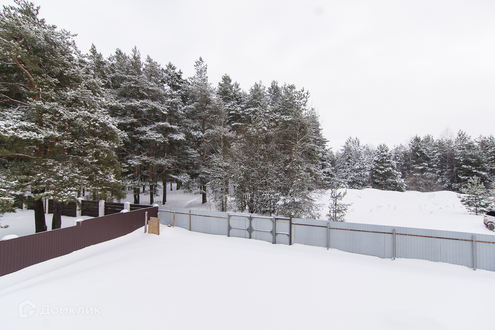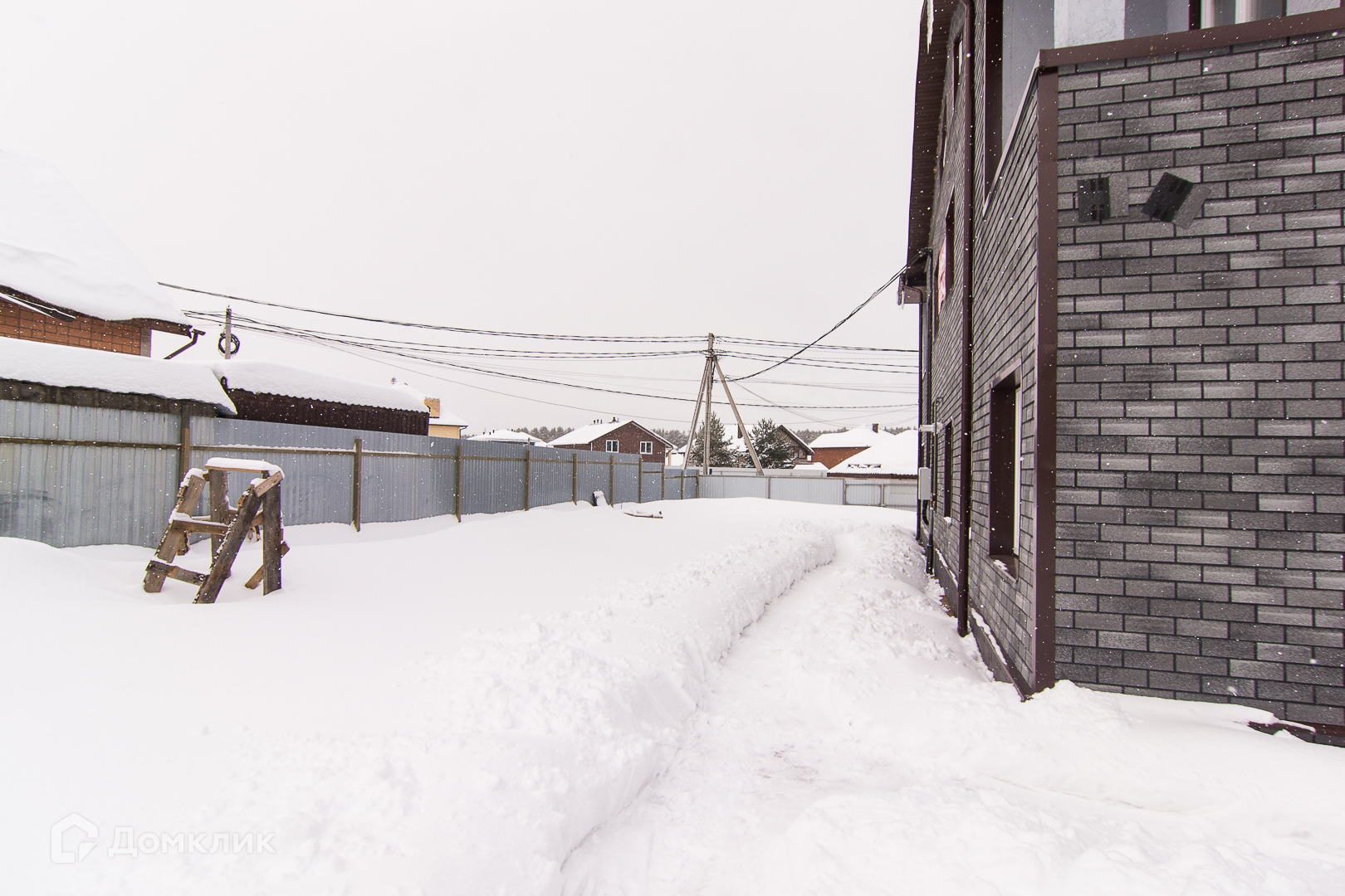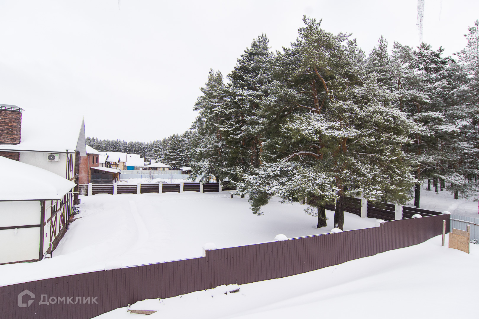 • По периметру дома стоит железный забор.