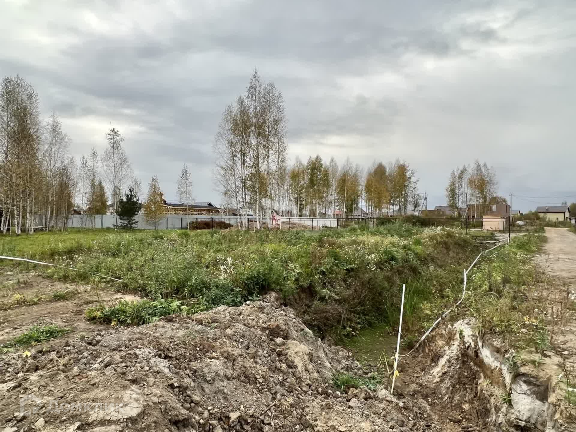 Вокруг участка подготовлен ров для дренажного устройства.