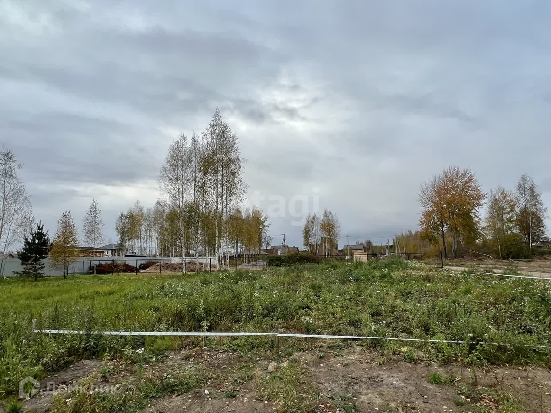 В угловой части участка растут сосны и молодые берёзы.