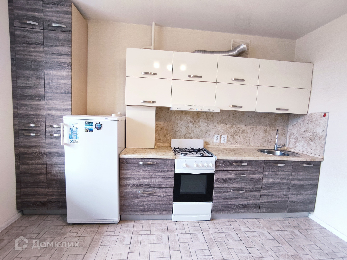 В квартире сделан ремонт, на полу ламинат и плитка, с/у совмещён в современном кафеле, мебель, холодильник, стиральная машина автомат.