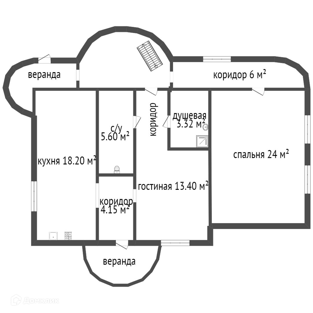1) 2-х этажный дом: S = 155 м.кв., 5 комнат, фундамент - ж/б плита, стены - г/б, лестница - монолит, широкие безопасные ступеньки изогнуты для удобства. Лоджия на 2-м этаже.