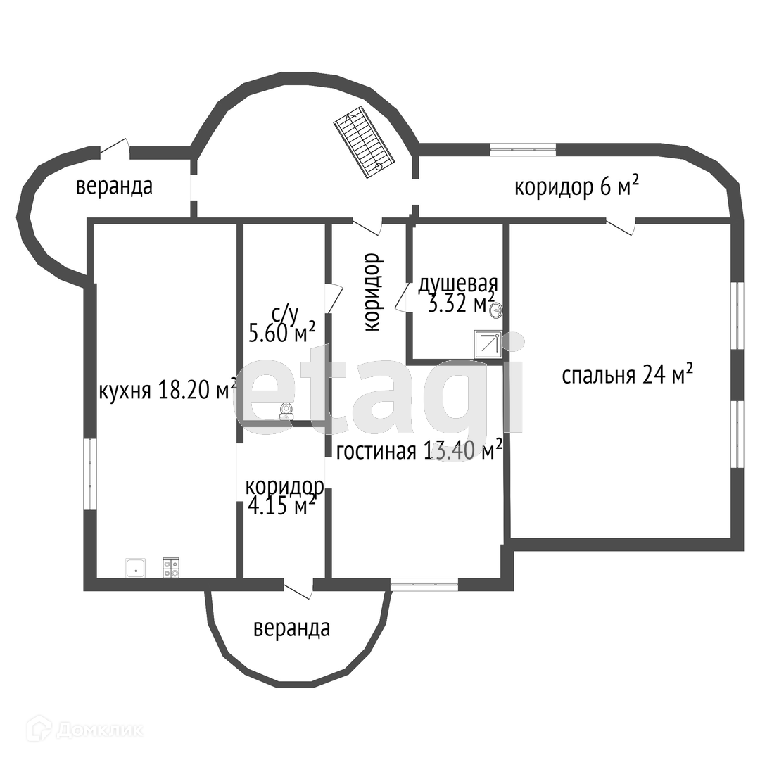 1) 2-х этажный дом: S = 155 м.кв., 5 комнат, фундамент - ж/б плита, стены - г/б, лестница - монолит, широкие безопасные ступеньки изогнуты для удобства. Лоджия на 2-м этаже.