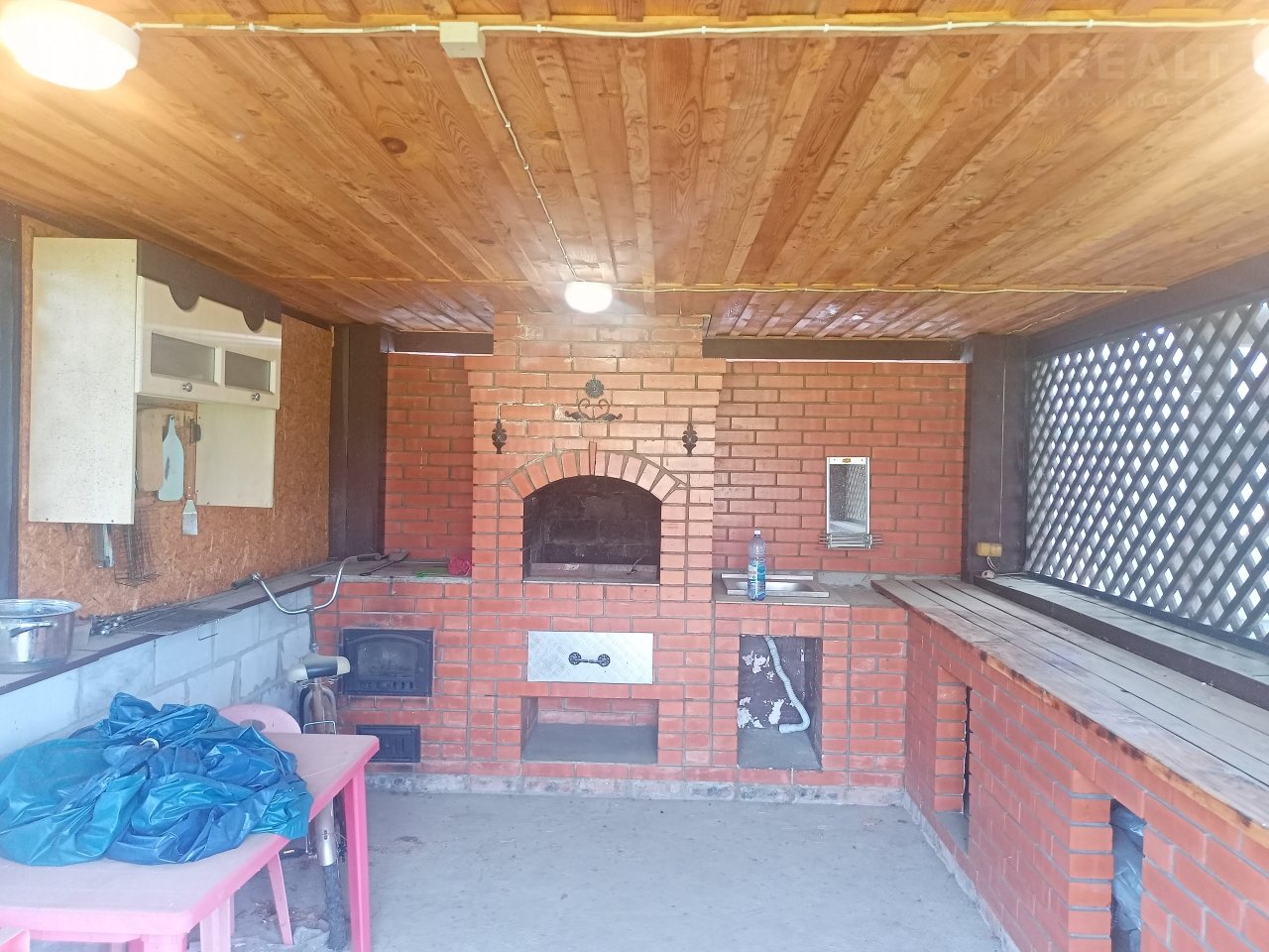 В доме есть четыре комнаты, кухня, прихожая, душевая и санузел. Также установлена система видеонаблюдения, домофон, жалюзи на окнах и две спутниковые тарелки (остается покупателю). Кухня оборудована встроенным кухонным гарнитуром с бытовой техникой: микроволновой печью, индукционной плитой, духовым шкафом и вытяжкой,стиральная машина, встроенные шкафы, телевизор и бесперебойник для насоса отопления,дорожки и паласы,бойлеры ( остается покупателю).Возможно оставить и другую мебель по договоренности.