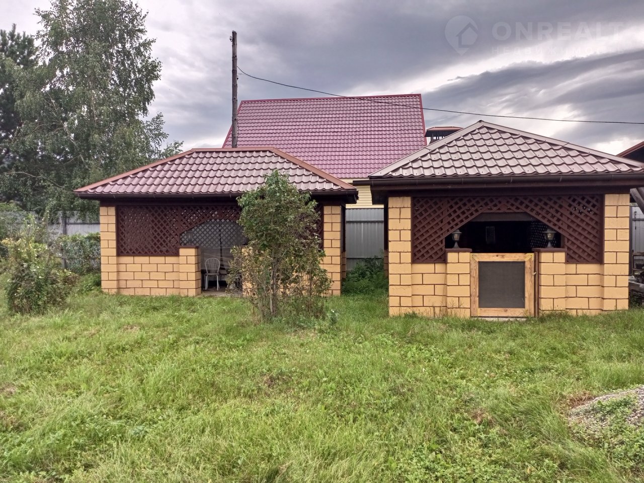 На территории участка расположены две кирпичные беседки, одна из которых оснащена мангалом и печкой на дровах. Также есть навес для трех машин, смотровая яма, гараж с электрическими воротами и глубокий сухой подвал.На участке также находятся хозпостройки, помещение для угля и дров, вольер для собаки все с электрическим освещением, теплица и плодоносящий сад.Дом окружен высоким забором на фундаменте, откатные ворота. Участок площадью 20 соток позволяет использовать его для огорода или строительства второго дома.