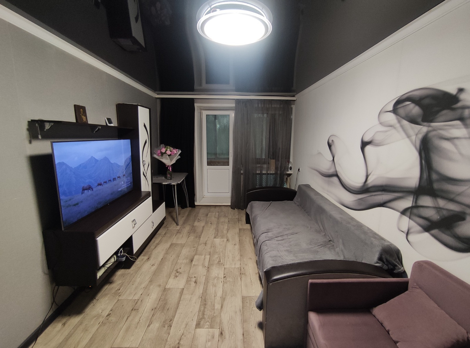 В квартире остаются: кухонный гарнитур, холодильник, микроволновая печь, стол, три табуретки, жалюзи, стиральная машина, обувница, вешалка, зеркало, шкаф купе, горка, диван, шторы.