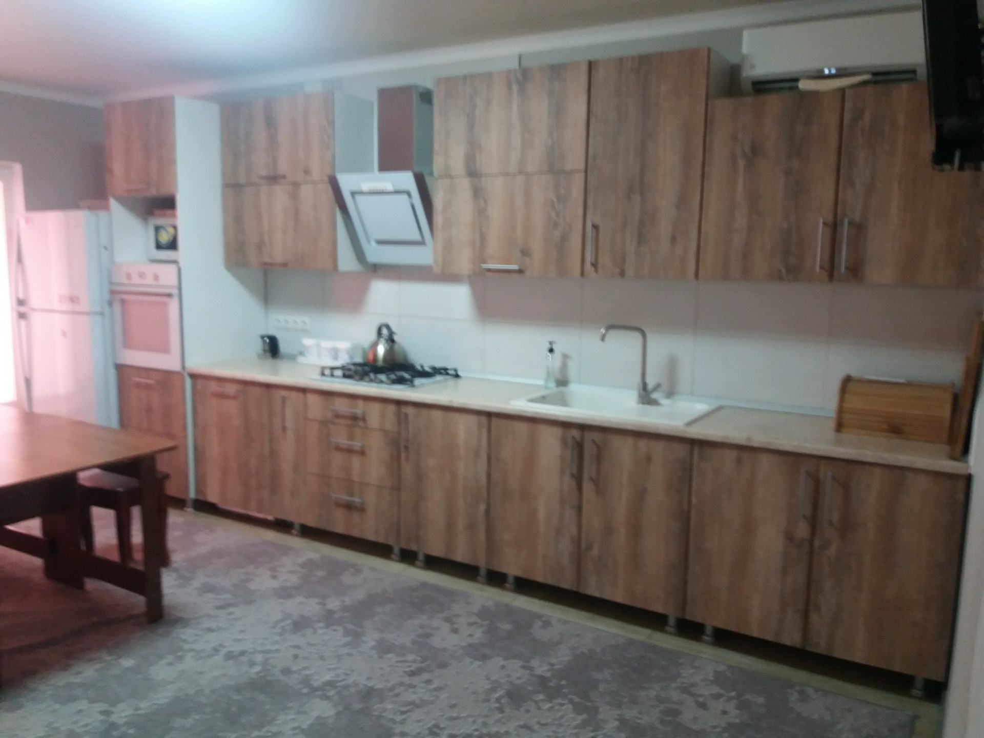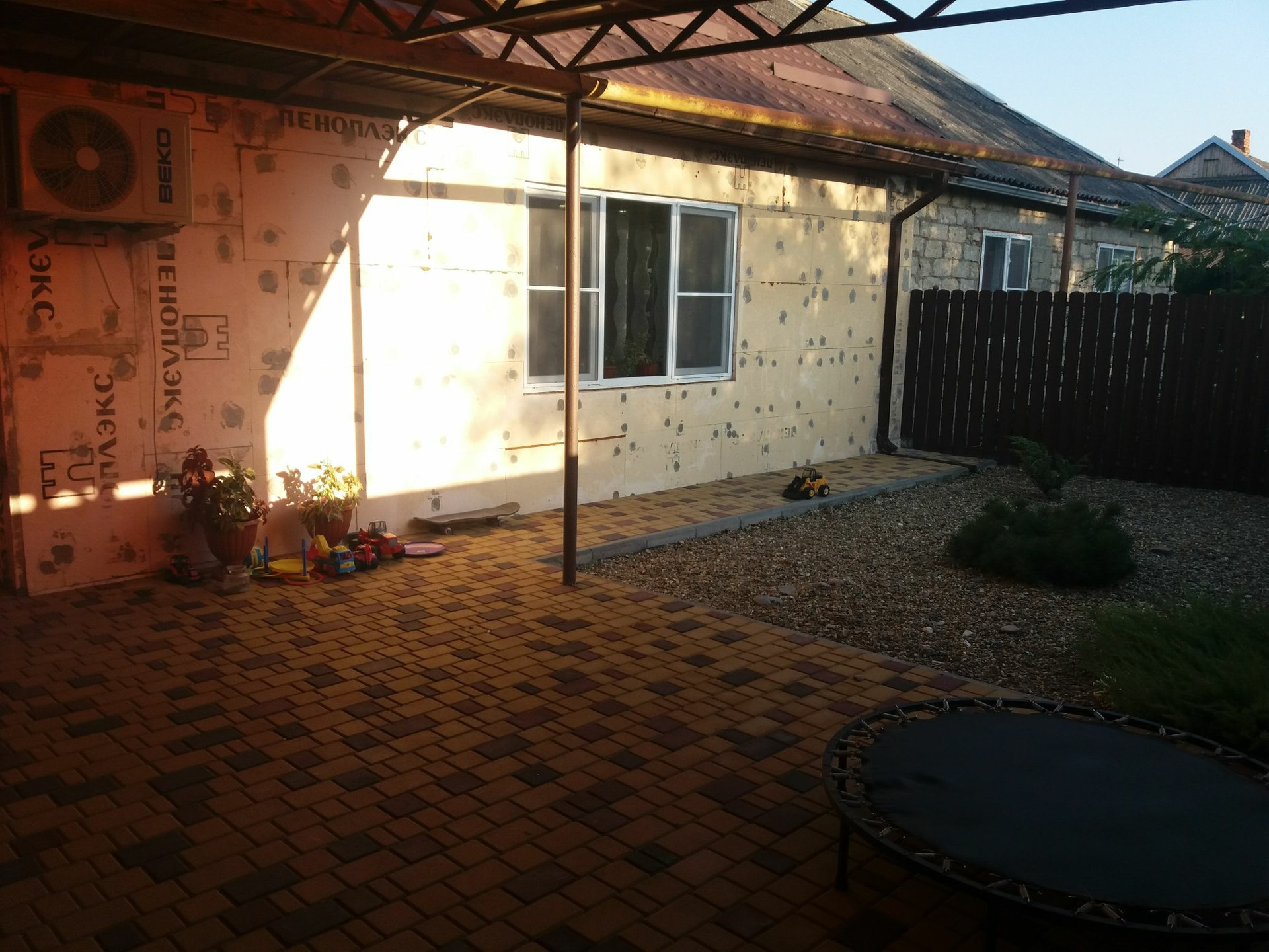 Продам блочный дом с капитальным ремонтом. В доме 2 изолированные спальни 12 м2 и 16 м2, зал 36 м2, кухня 21 м2, просторная прихожая, совмещённый санузел, кладовая и котельная, при желании есть возможность сделать мансардное помещение. Тёплый пол в кухне и ванной. Есть навес 8×8 м перед домом, двор вымощен брусчаткой, дом утеплён. На участке есть мододой сад. В шаговой доступности школа, детский сад, поликлиника, парк. От Азовского моря 40 км, от Черного моря 50 км. По остальным вопросам прошу обращаться по телефону.