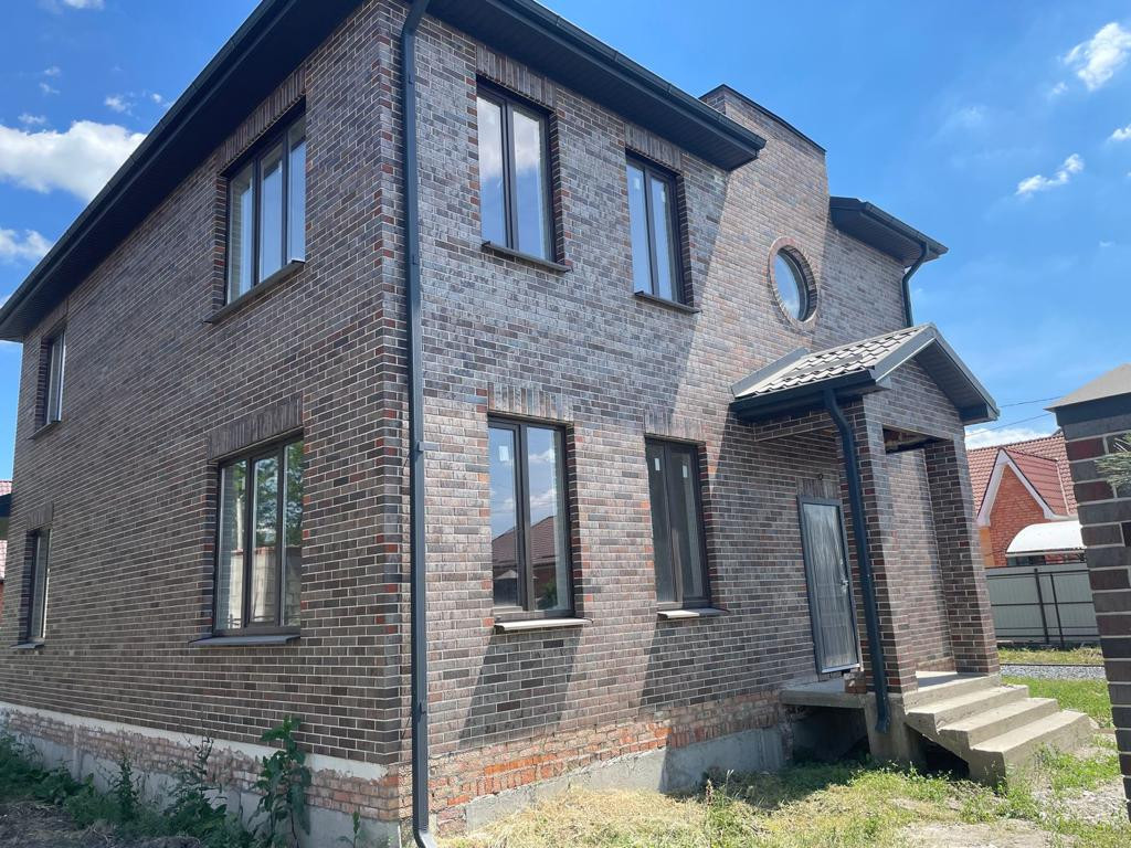 Участок 4,2 сотки, площадь дома - 180 кв.м. Материал стен - бетоноблоки, отделка - Славянский кирпич. Коммуникации - свет, газ, яма, скважина. Отделка - стяжка, штукатурка, тёплый пол, газовое оборудование. Есть парковка - для двух машин.